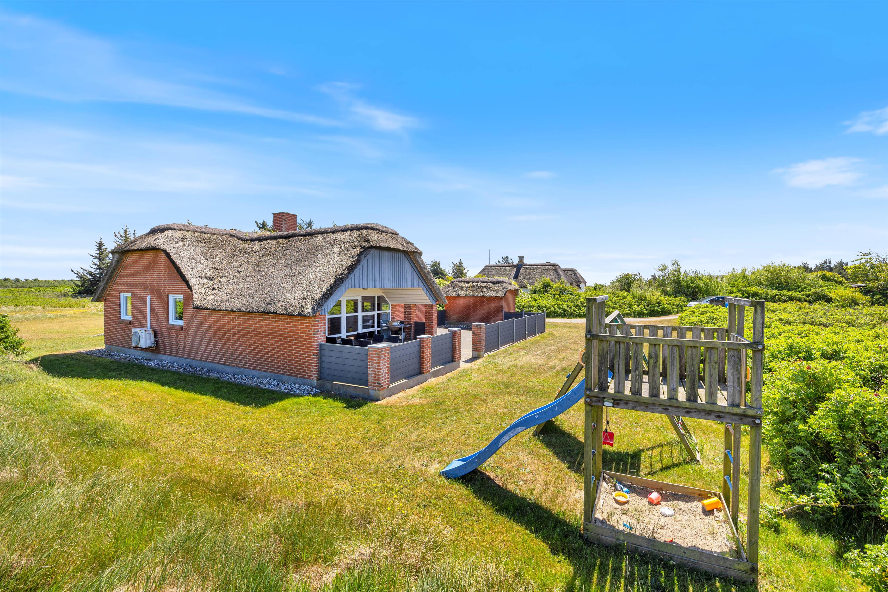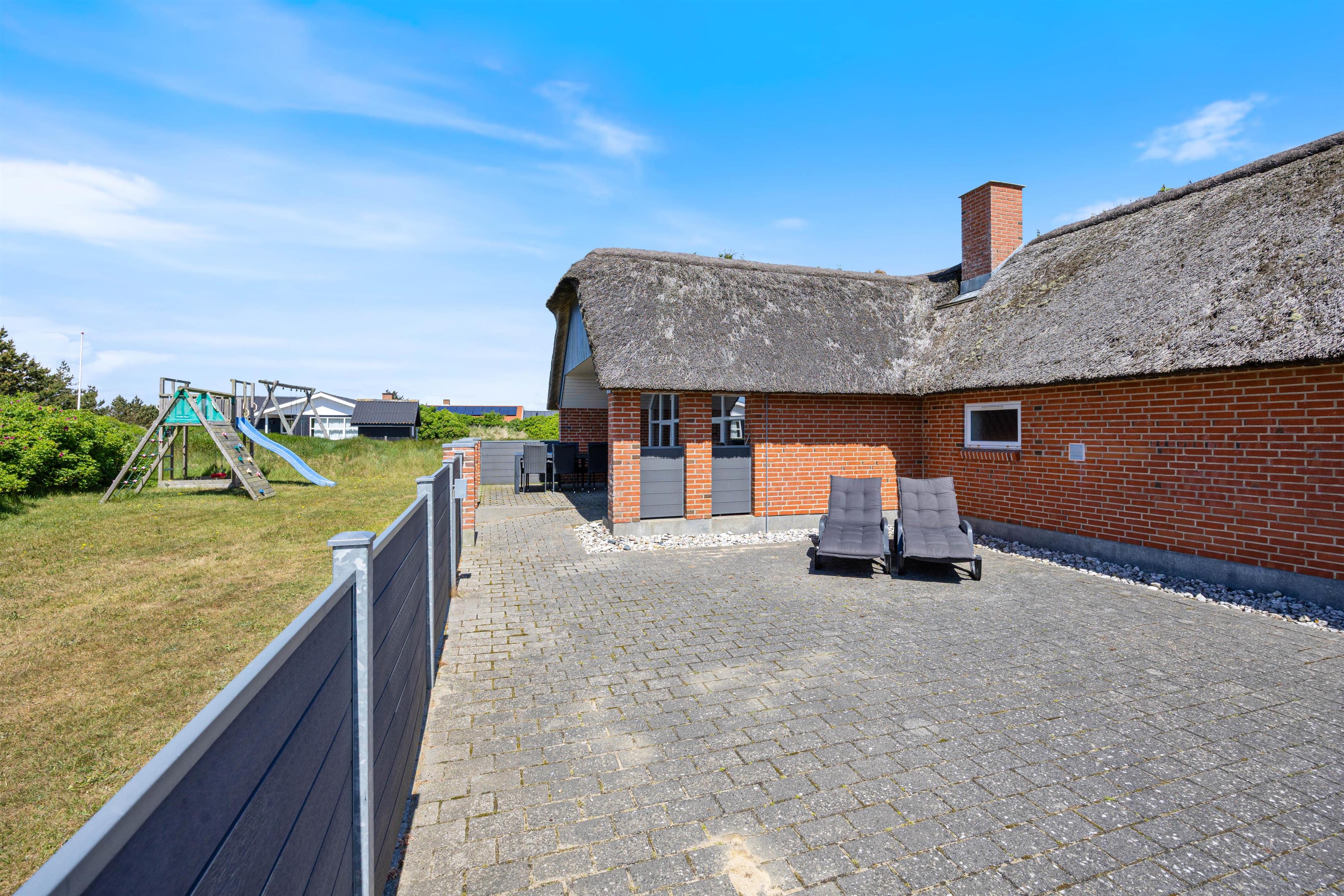 Beautiful and well-maintained thatched cottage situated on a lawned plot near Søndervig, perfect for a peaceful and relaxing family holiday. The hot tub and sauna provide pure relaxation.