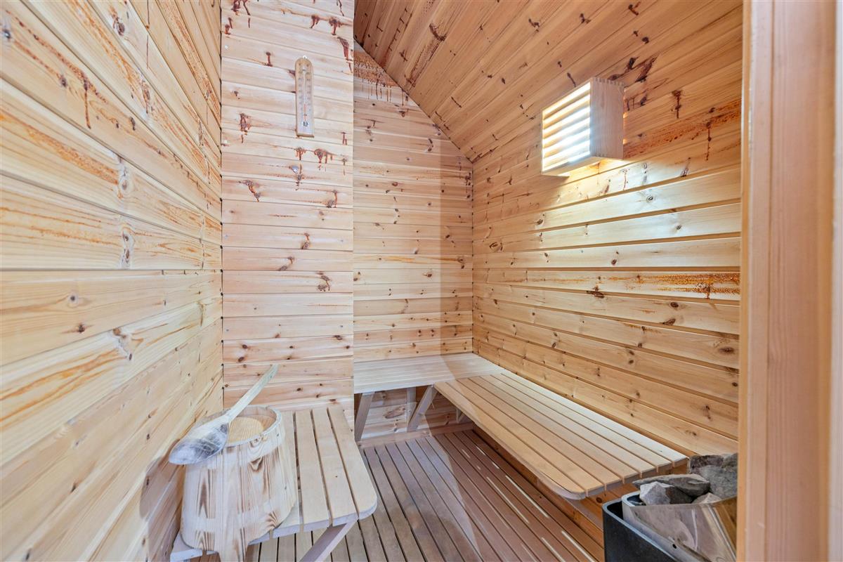 The sauna and hot tub offer perfect relaxation after a long walk.