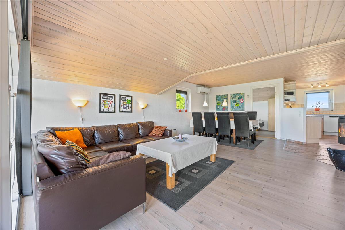 The heat pump and wood-burning stove maintain a comfortable indoor climate. During the cooler months, you can curl up on the sofa and listen to the crackling of the fire.