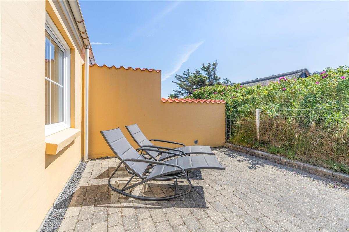 On sunny days, you can step from the living room onto the terrace. Make yourself comfortable on the garden furniture and sun loungers while enjoying the good weather. The south-facing terrace catches the sun throughout most of the day. There's also a barbecue available for outdoor cooking.