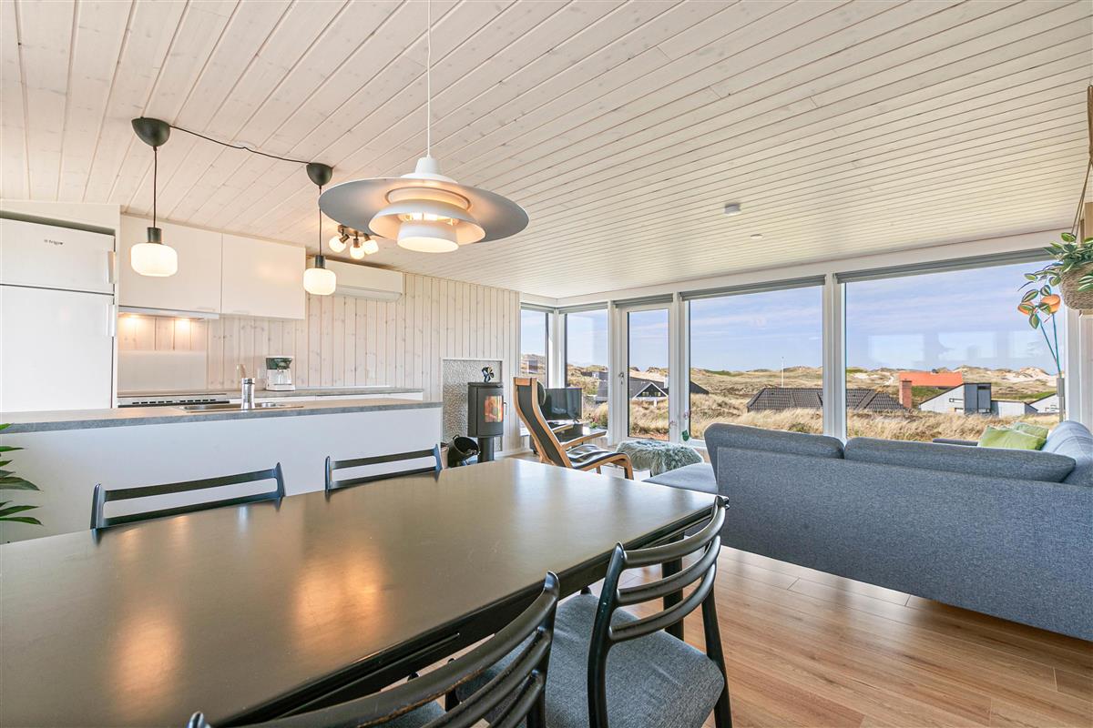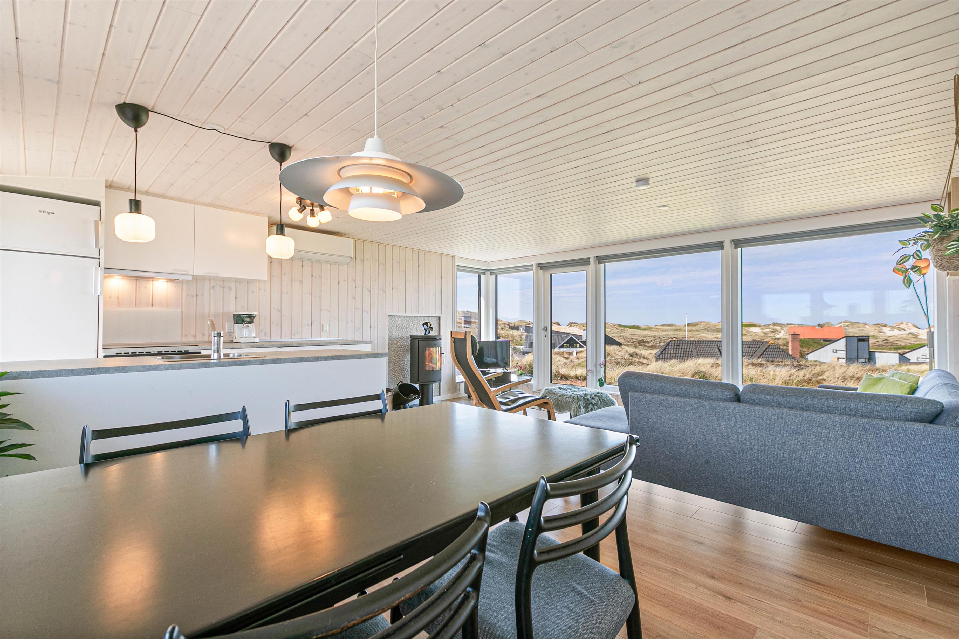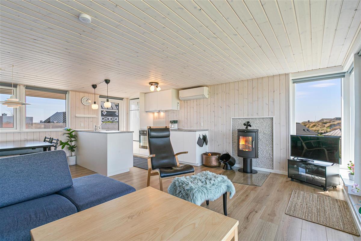 Located at Hvidbjergvej 99 in Søndervig, this charming holiday home accommodates up to 5 people and 1 dog. It is equipped with both a wood-burning stove and a modern heat pump. Thanks to its elevated position in the dunes, this classic wooden house offers beautiful panoramic views over the Søndervig surroundings.