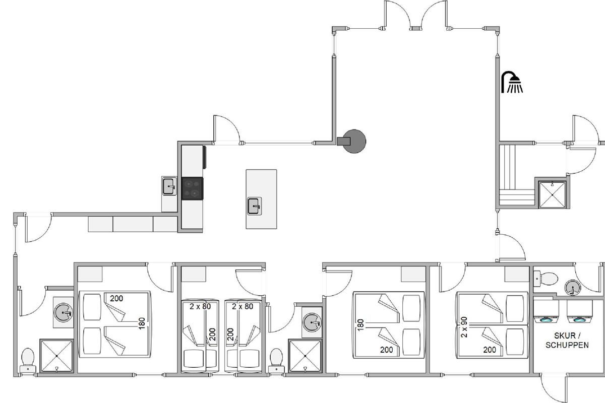 With a premium living area of 180 m², offering space for up to 10 people, the holiday home invites you to spend harmonious time together. The open-plan living area, with its large windows that let in plenty of light, is the ideal place for sociable evenings. A cozy wood-burning stove provides pleasant warmth on colder days and creates a special atmosphere. The well-equipped kitchen with dishwasher ensures you don’t have to worry about who will do the dishes after a delicious dinner.
