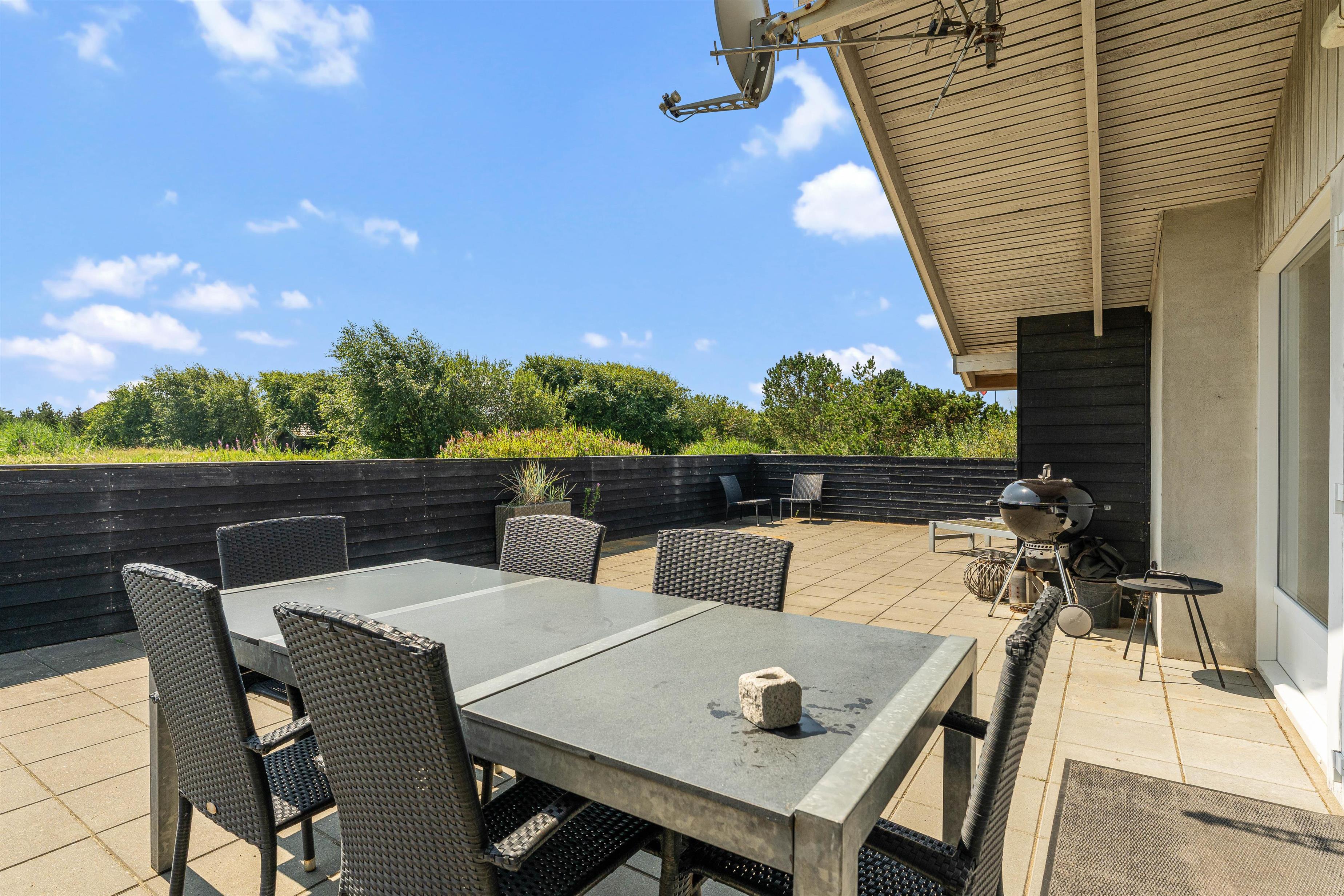 From the living area, you can access the partially covered and fully enclosed terrace. Here you can briefly leave children and your dog to play unsupervised, without worrying about them wandering off while you fetch refreshments or a snack from the well-equipped kitchen. The terrace features garden furniture and a barbecue. In fine weather, you can enjoy the sunshine during the day, have a barbecue in the evening, and reflect on the day while planning tomorrow's activities.