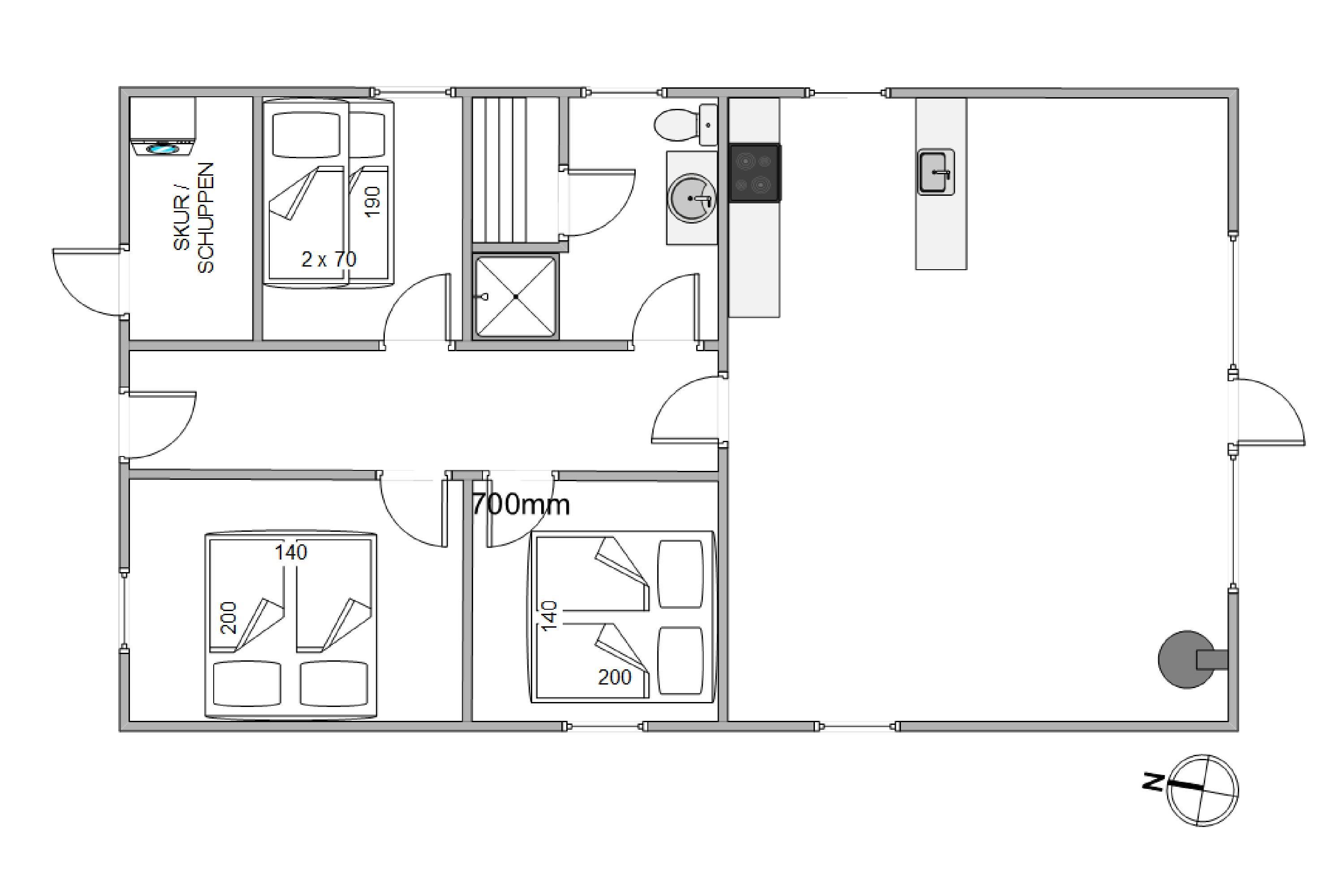 Light-coloured walls and high ceilings create a welcoming atmosphere, making this 81-square-metre holiday home feel inviting and very comfortable. There are 3 bedrooms and 1 bathroom with underfloor heating. The holiday home offers all the comfort you need for a relaxing family holiday. In the evening, you can unwind in the sauna while the dishwasher takes care of the cleaning up. Additional amenities include an efficient heat pump, washing machine, tumble dryer and internet connection.
