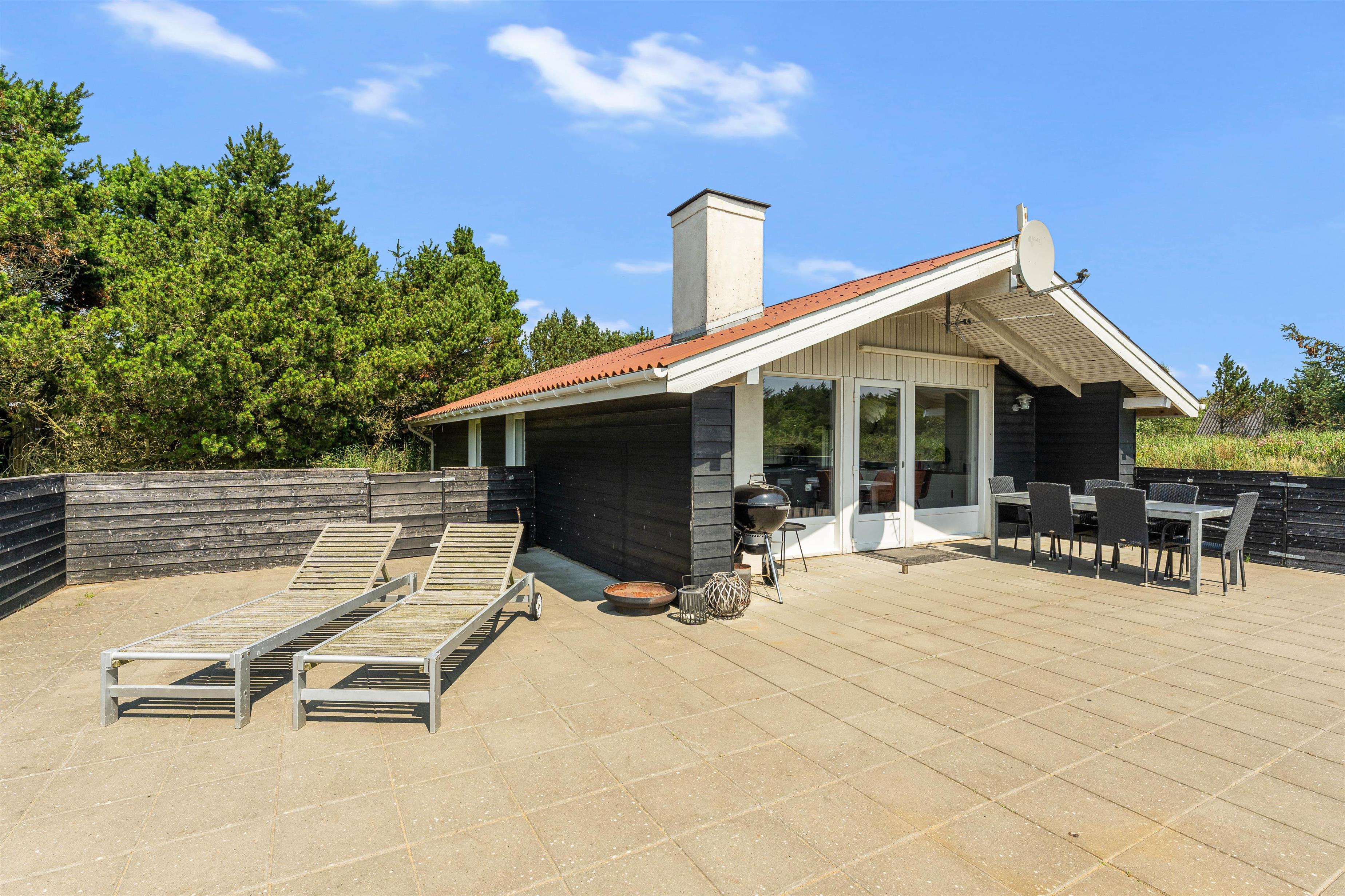Located at Hjelmevej 77, this lovely holiday home in Søndervig provides the perfect setting for a family holiday. Up to 6 people and 1 dog will find plenty of space in this cosy holiday home. The partially covered terrace is fully enclosed, allowing children and dogs to play safely without constant supervision. A sauna, wood-burning stove and excellent location on Holmsland Klit, just 750 metres from the beach, are additional reasons to choose this comfortable holiday home for your family holiday in Denmark.