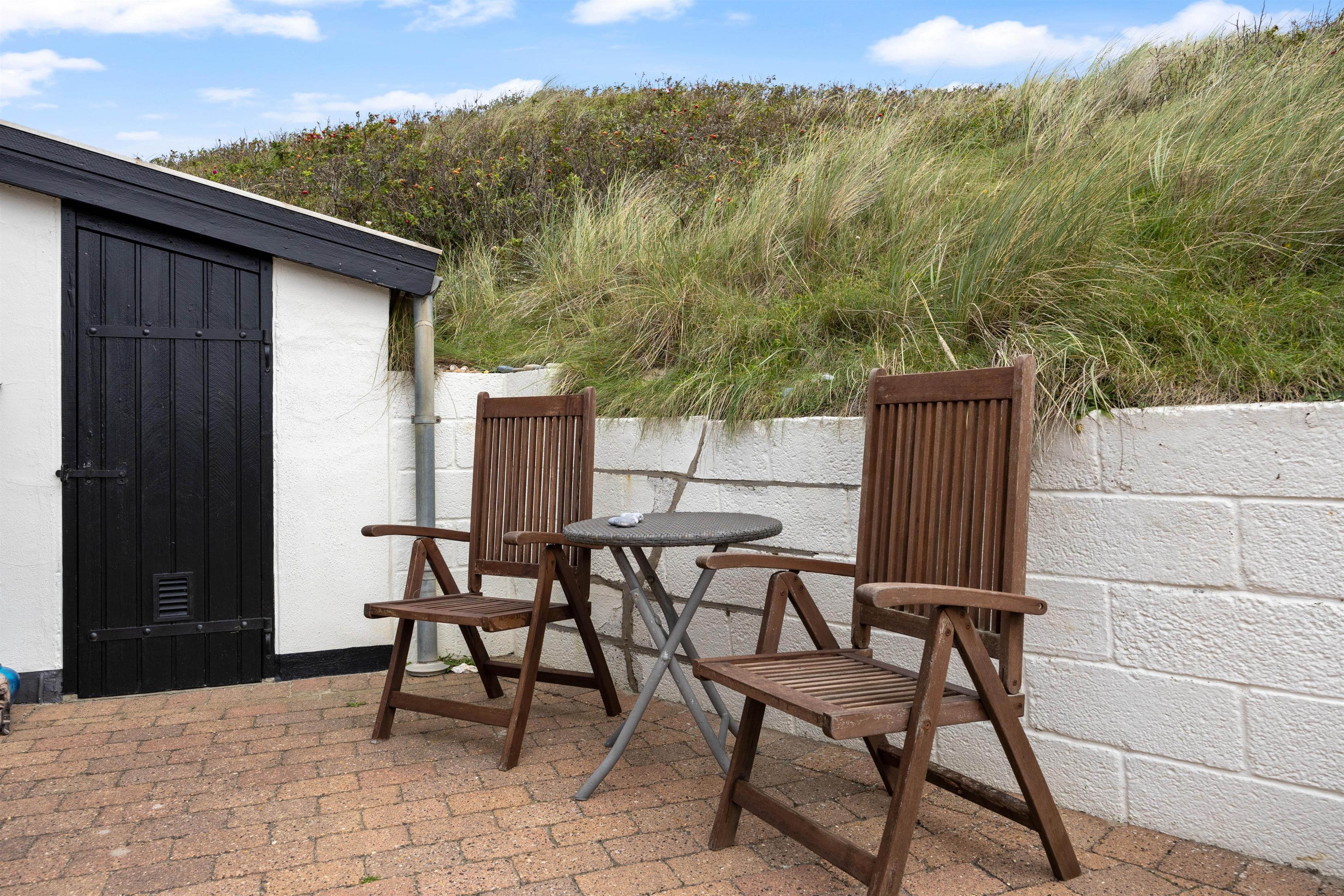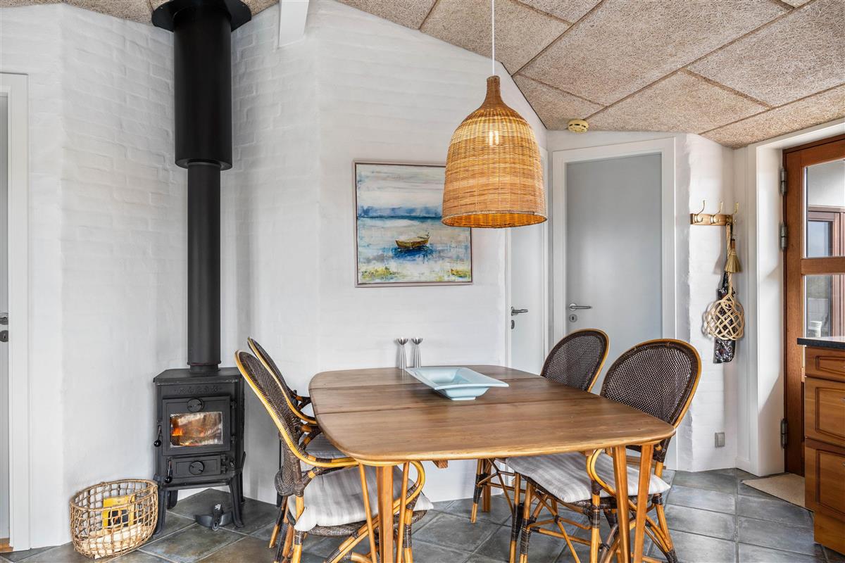 Situated in a quiet cul-de-sac with minimal traffic, this holiday home allows you to enjoy your holiday in undisturbed tranquillity. The holiday home's charming interior welcomes you immediately, creating the perfect holiday atmosphere. The kitchen and dining area open onto the tastefully furnished living room, which is bright and welcoming. The holiday home features a spacious bathroom with walk-in shower, washing machine, tumble dryer, and underfloor heating - ensuring no cold feet during your morning routine. There are two generous bedrooms, each equipped with a double bed.