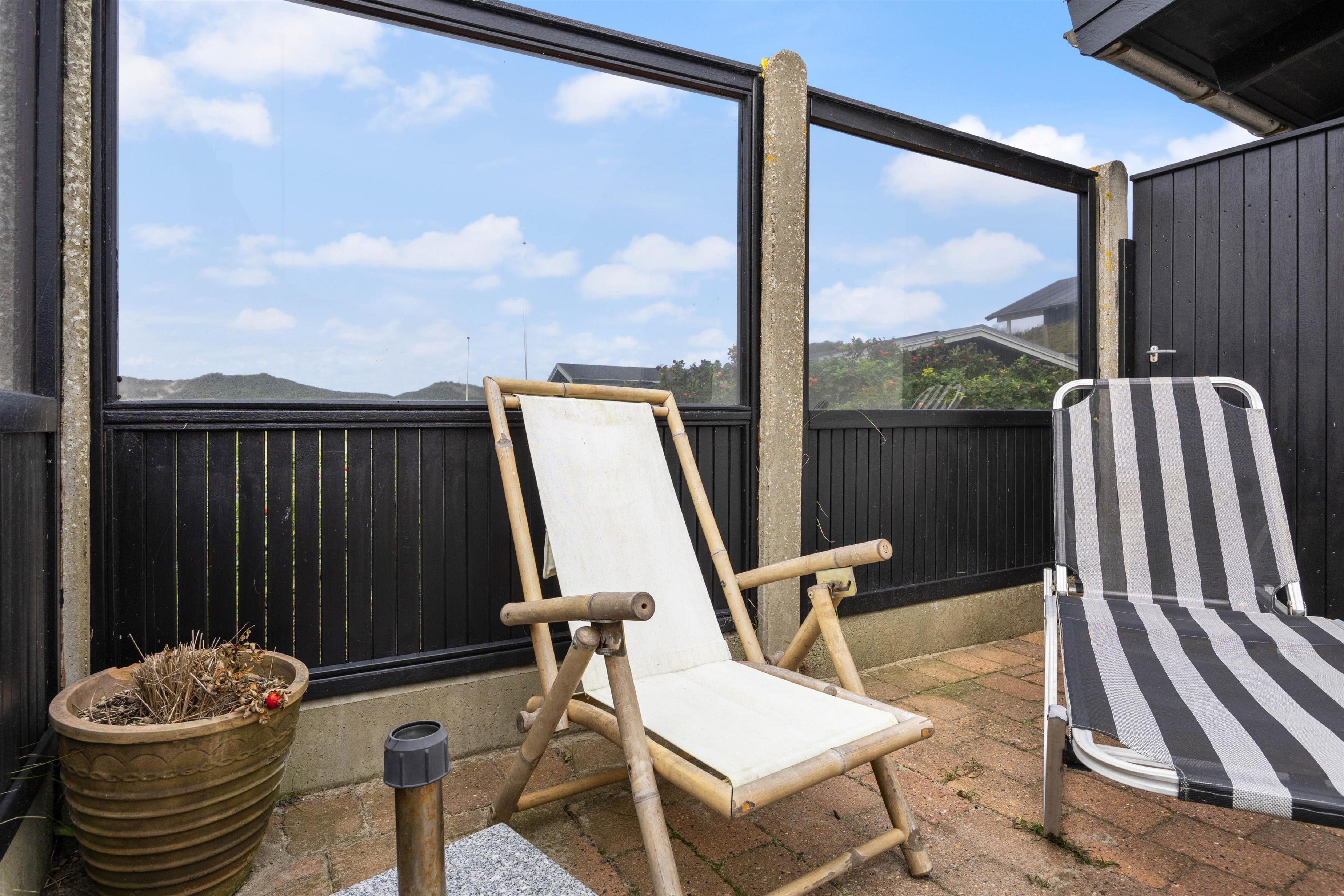 The holiday home's beautiful panoramic views make it truly unique. There's nothing better than getting up in the morning, brewing a lovely cup of coffee, and taking it out to the terrace to fully enjoy the stunning views. The holiday home features two terraces - a sheltered south-west terrace and an open east-facing terrace. The sheltered terrace provides welcome protection on windy days. Both terraces are furnished with garden furniture, sun loungers, and a barbecue, ensuring pure holiday relaxation and comfort are the order of the day.