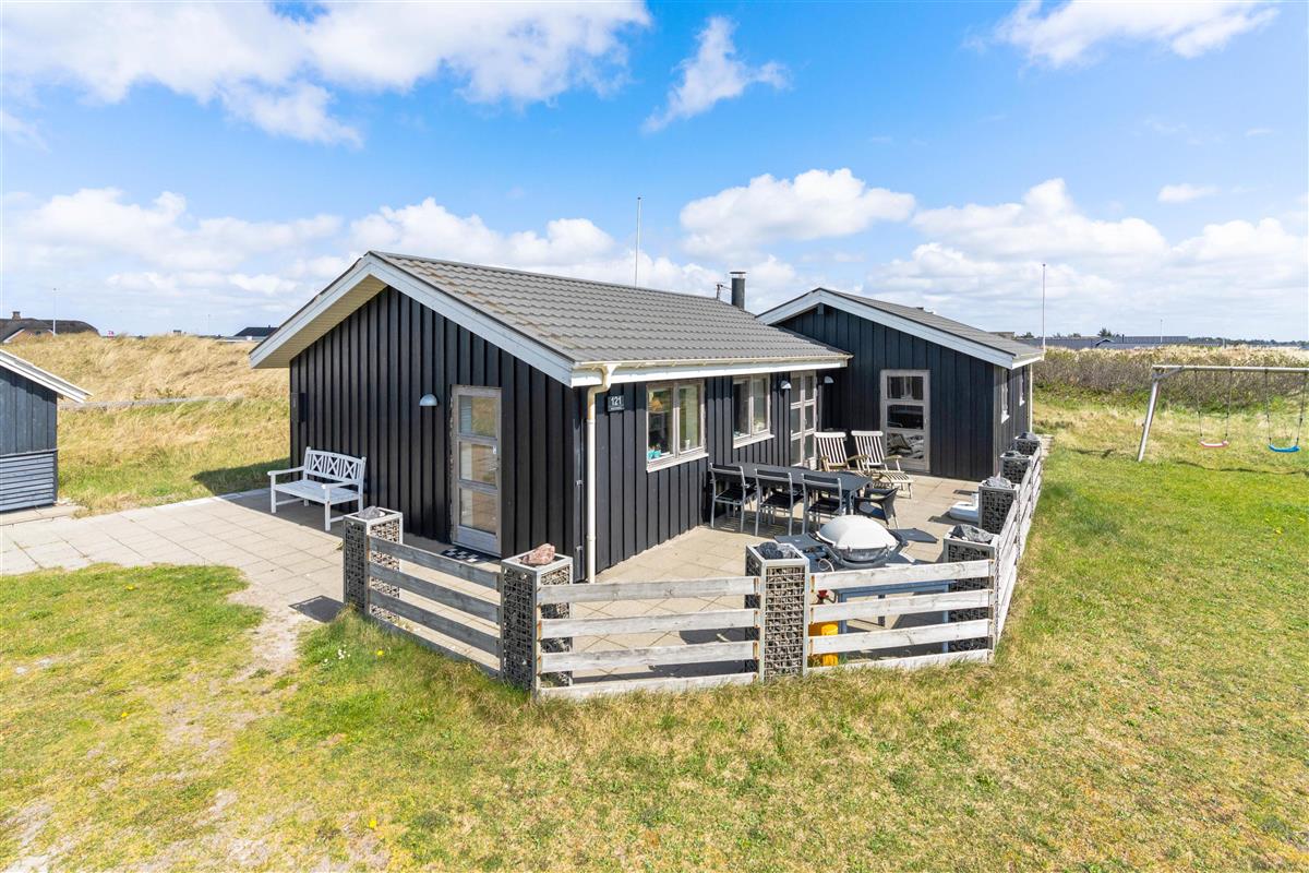 This beautiful holiday home enjoys a prime location on a 1,200-square-metre natural plot in the dunes of Søndervig, just 200 metres from the stunning North Sea. This classic holiday home at Hafavej 121 has everything you need for a relaxing family holiday, including a whirlpool. It offers 98 square metres of living space for up to 6 people. Dogs are also welcome. The spacious outdoor area features a swing and sandbox for children.