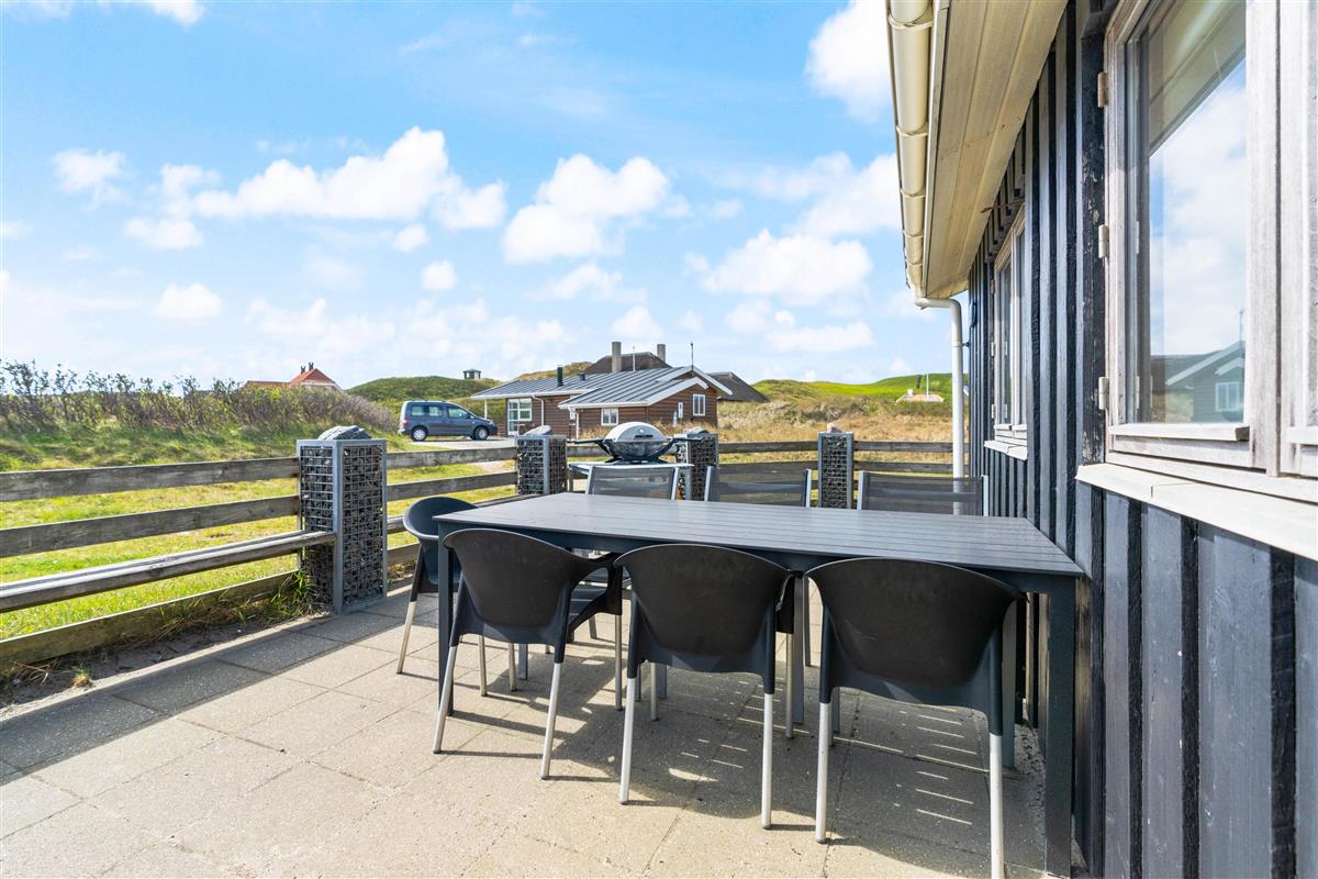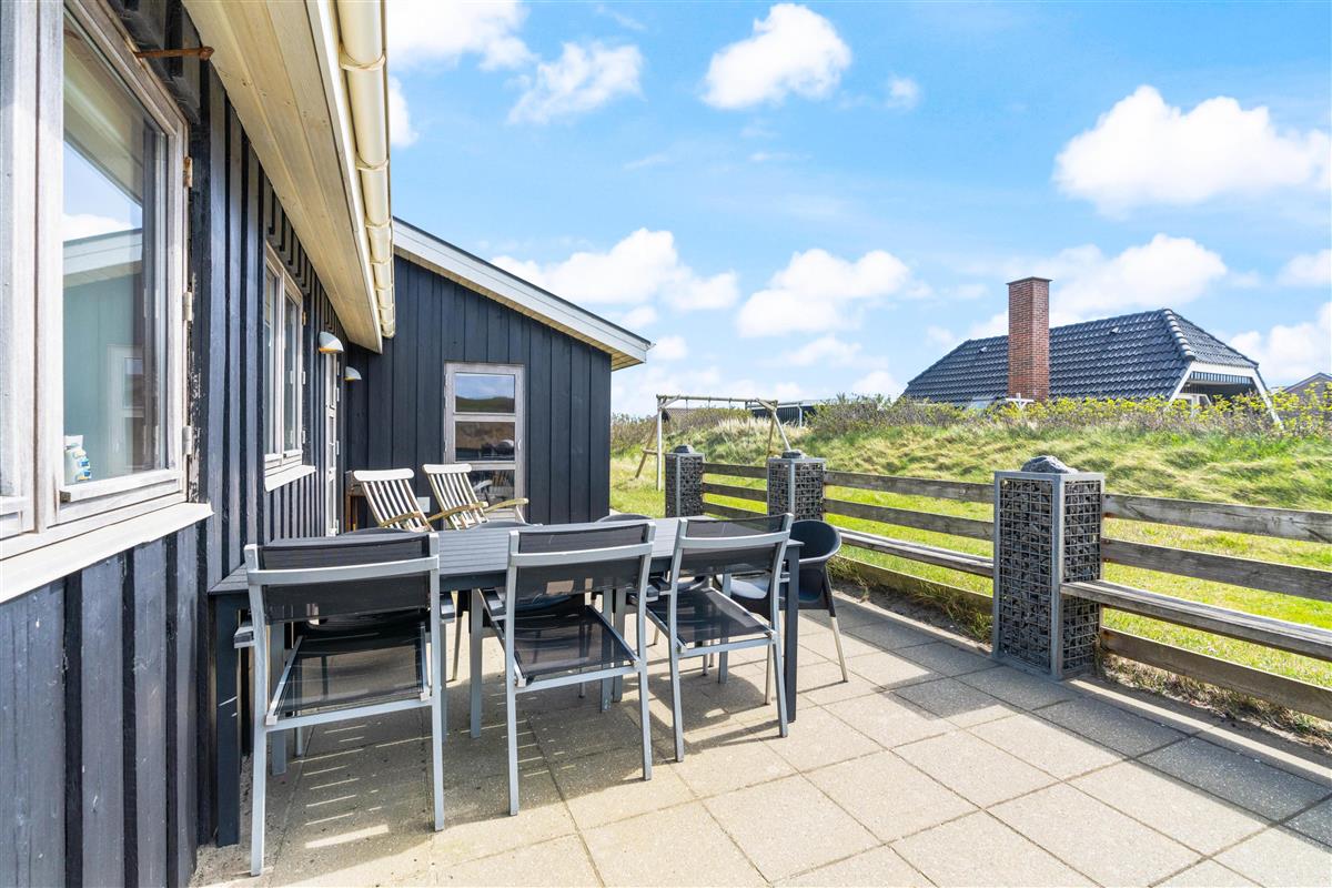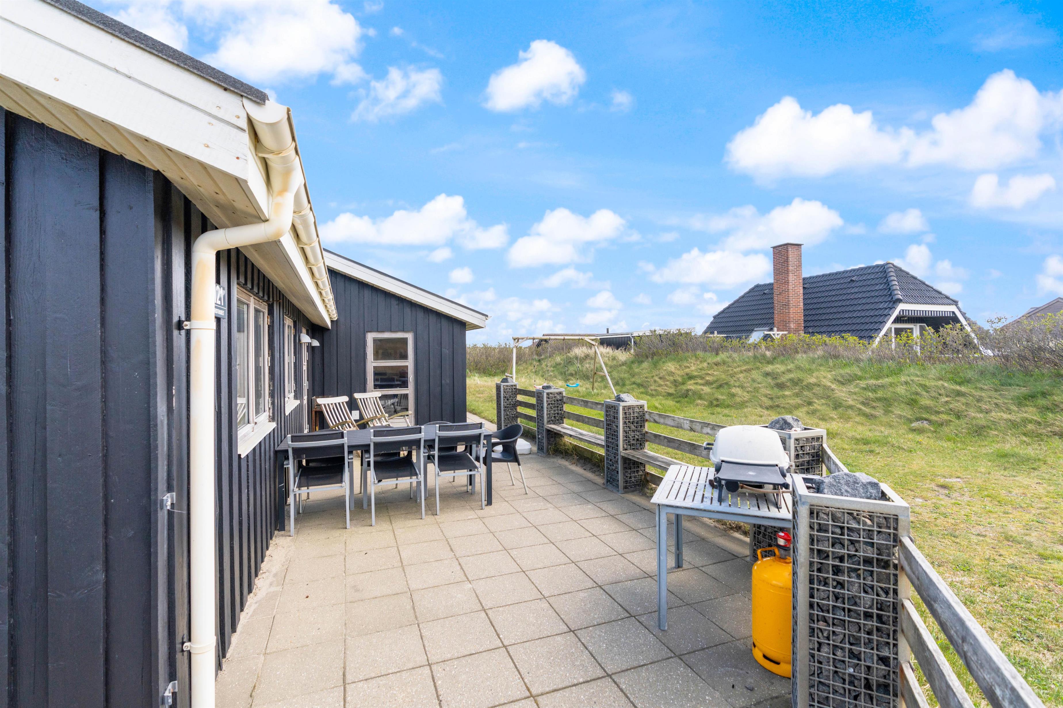 The terrace offers plenty of space for all guests. Here you can enjoy barbecues together, savour your morning coffee when it's still peaceful outside with only the sound of the sea, read a book on the sun lounger while soaking up the sunshine, as the children play in the sandbox, on the lawn, or on the swing.