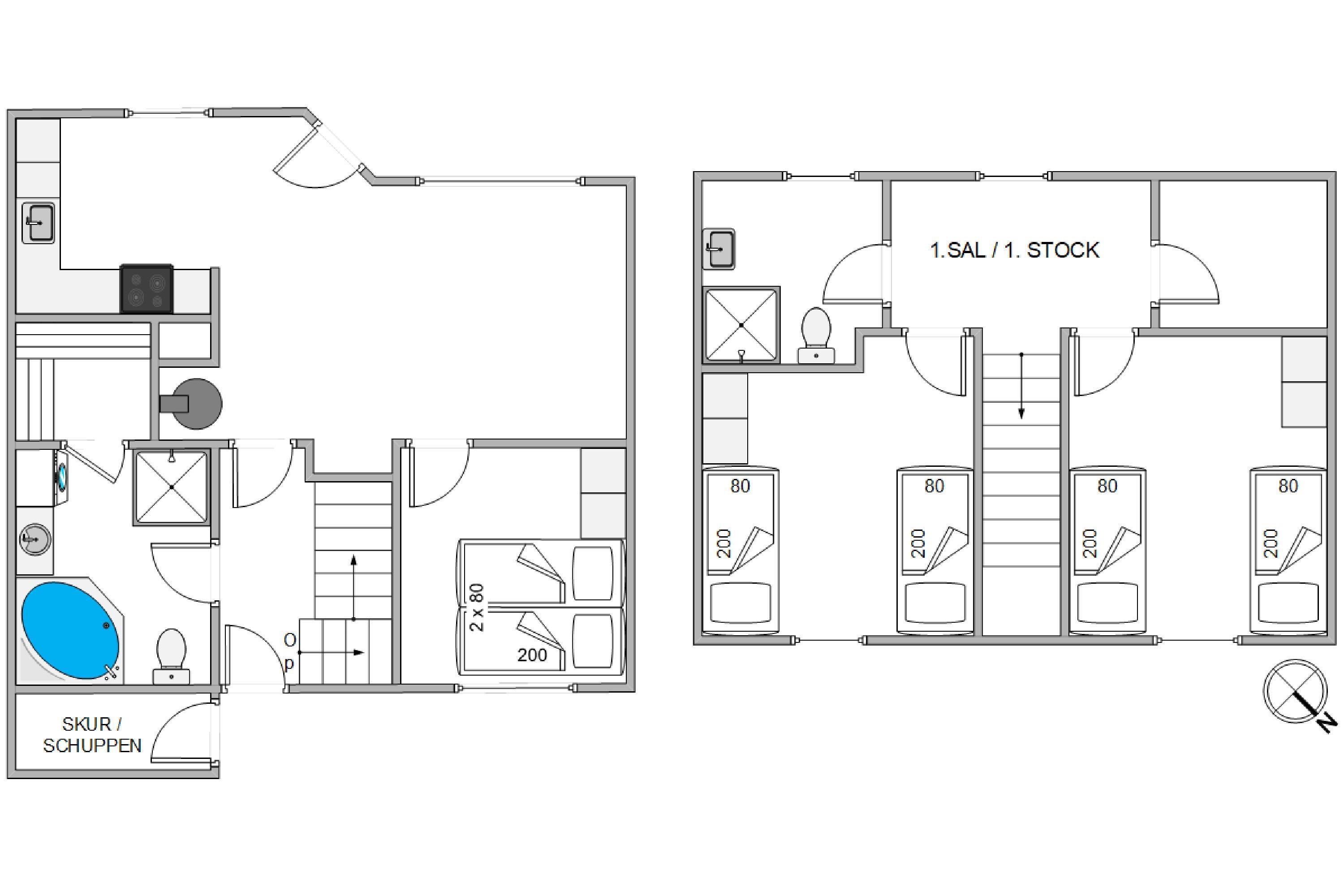 The holiday home has two bathrooms, both featuring underfloor heating. One bathroom is equipped with a whirlpool and sauna, where you can truly experience that holiday feeling of wellness and relaxation. To enjoy the fine weather, there's a lovely sheltered terrace with various garden furniture and a barbecue. Here you can make yourself comfortable on one of the sun loungers with a cool drink, taking in the atmosphere of Søndervig.