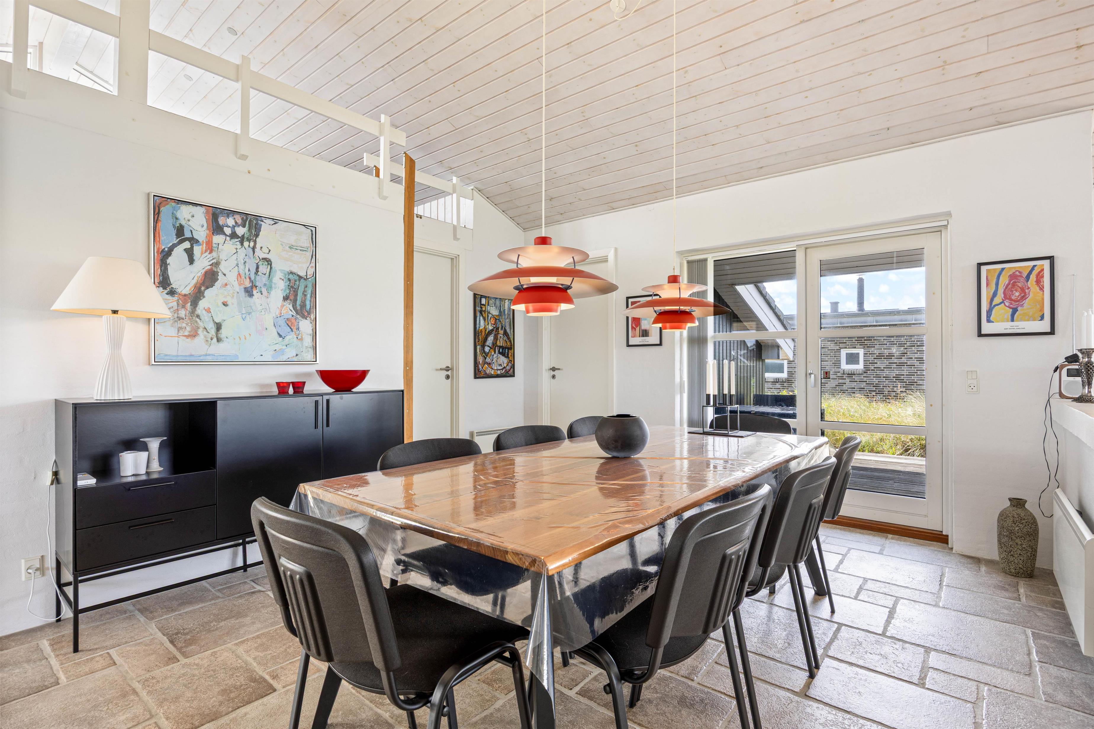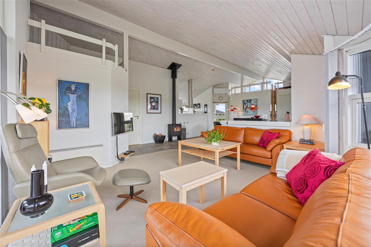 Das Ferienhaus bietet euch einen unbeschwerten und entspannten Urlaub. Es gibt einen schönen, großen Wohn – und Essbereich mit integrierter, offener Küche. Durch das offene Wohnkonzept könnt ihr viele schöne Stunden gemeinsam mit der ganzen Familie verbringen. Die hohen Decken und der schöne, zentral gelegene Kamin mit seinen knisternden Flammen schaffen eine gemütliche und warme Atmosphäre. Die Sofaecke lädt zu einem entspannten Abend mit einem guten Buch oder einem gemütlichen Filmabend ein. Da das Ferienhaus mit stabilem und schnellem Glasfaser-Internet und einem Fernseher mit Chromecast ausgestattet ist, könnt ihr ganz einfach eure Lieblingsserie streamen. Die energiesparende Wärmepumpe sorgt das ganze Jahr über für ein angenehmes Raumklima.