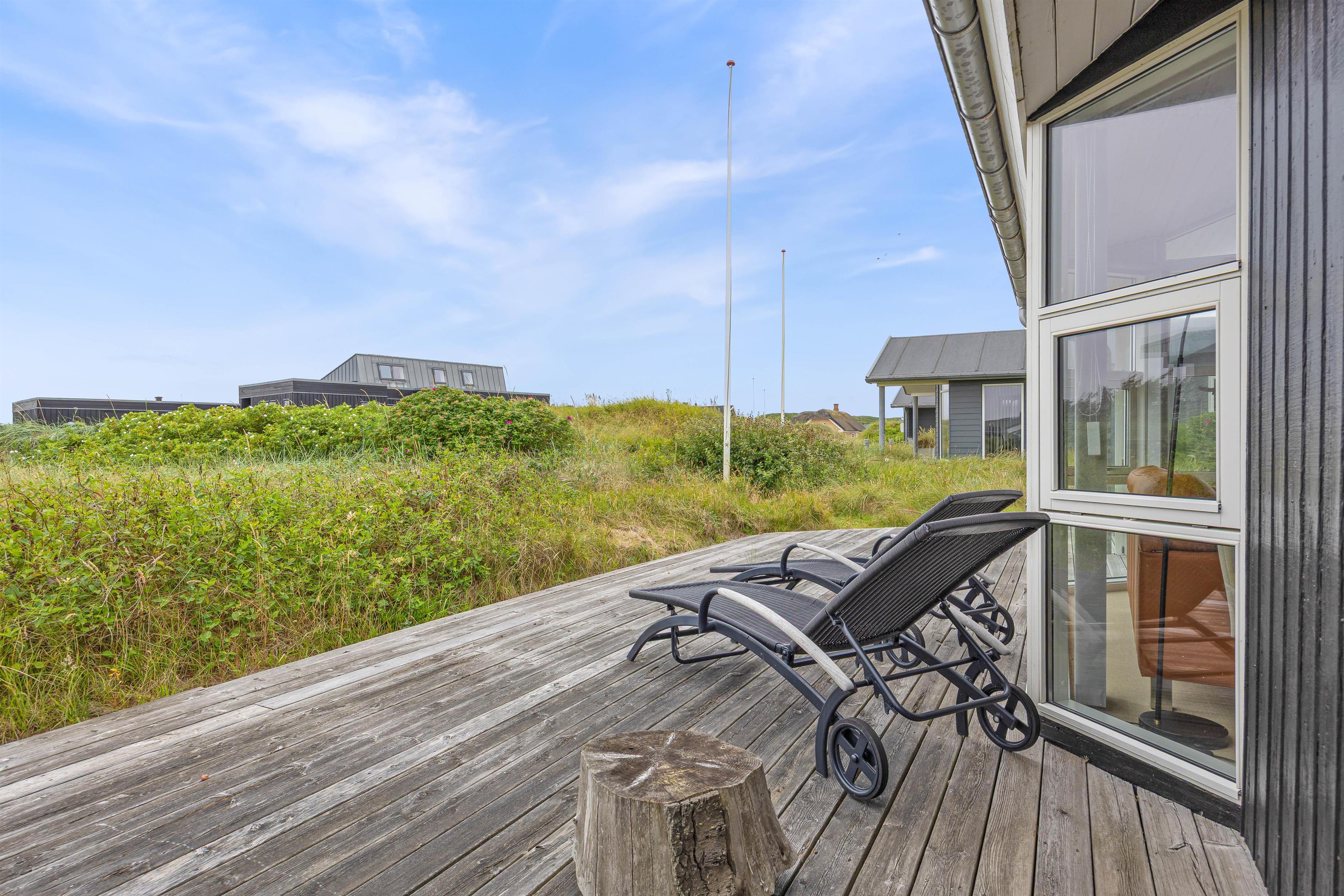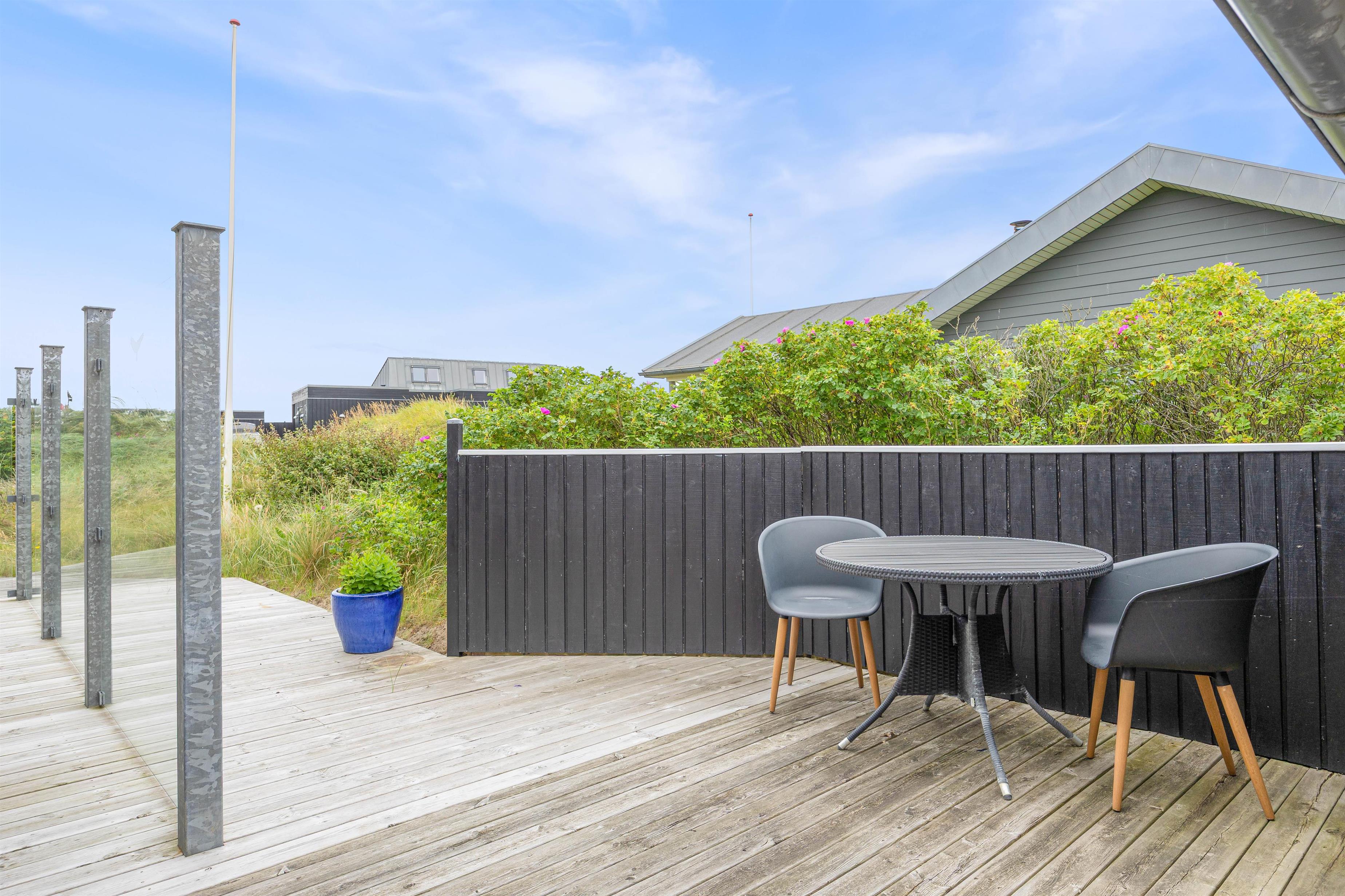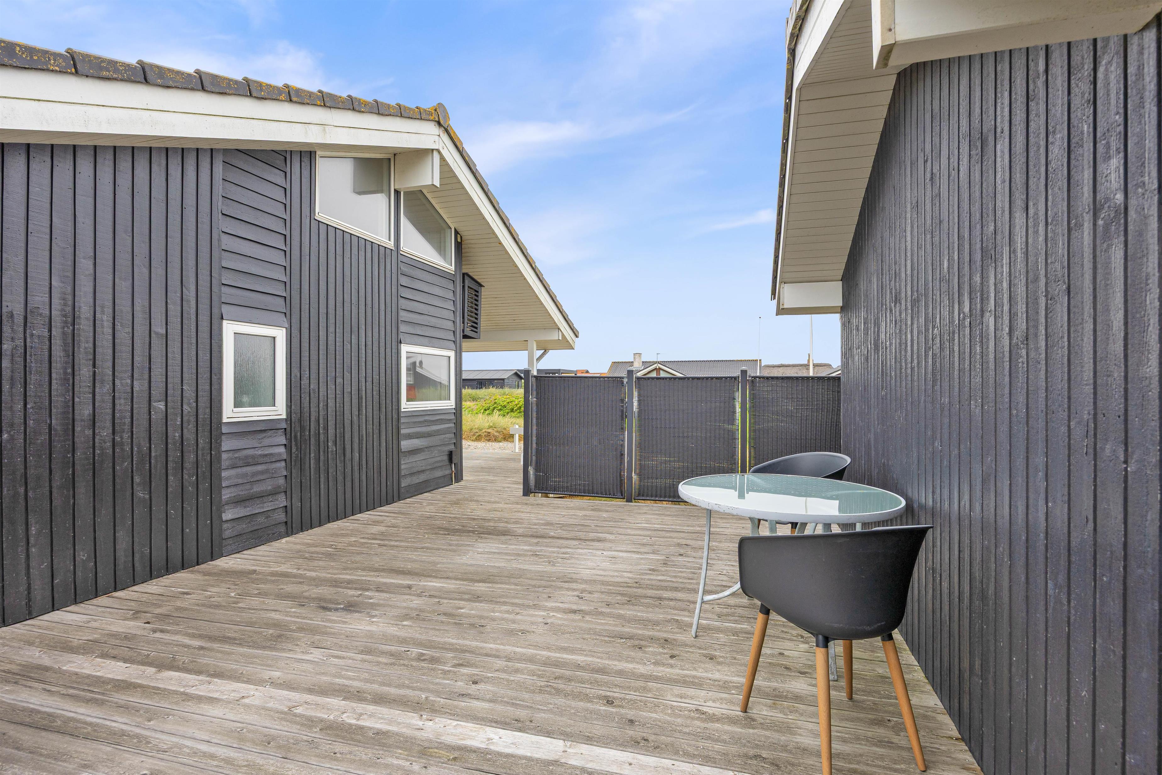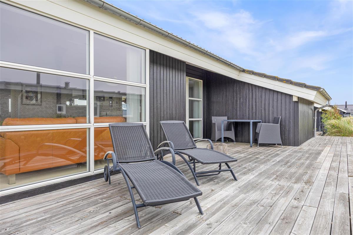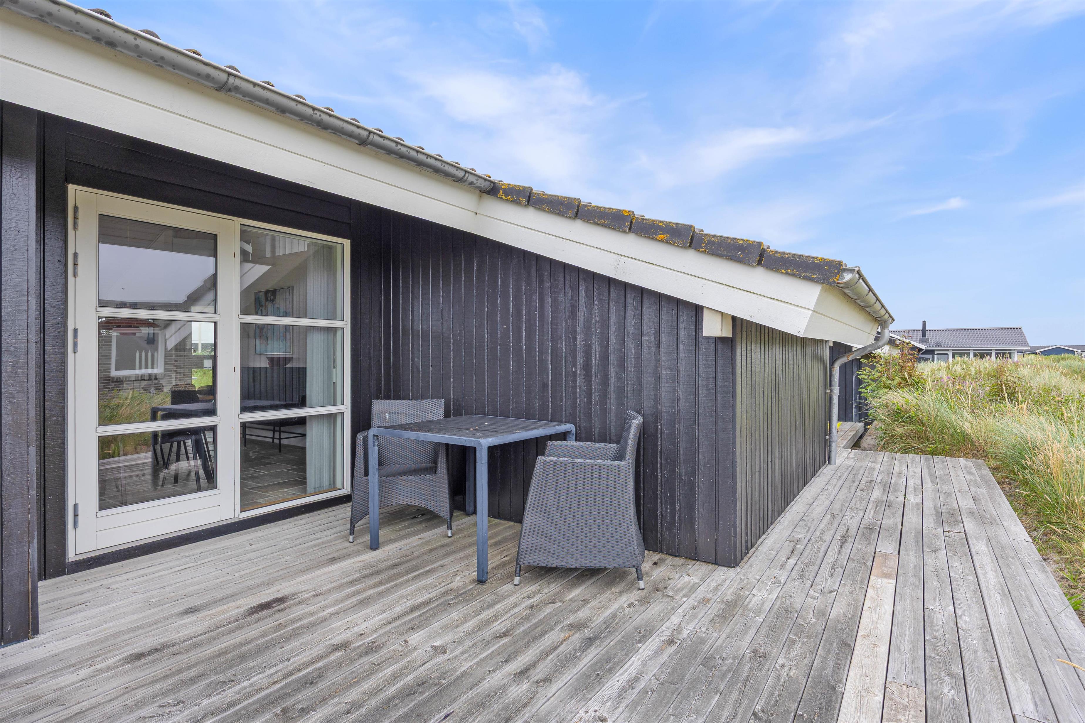 Das Ferienhaus im Sand Holms Vej 78 ist von einer schönen Holzterrasse umgeben, auf der ihr die frische Meeresluft genießen können. Es gibt bequeme Gartenmöbel und Sonnenliegen, auf denen ihr Sonne tanken könnt. Die Terrasse ist nach Westen hin überdacht und geschützt, sodass es auch ein schattiges und trockenes Plätzchen gibt. Das Ferienhaus verfügt über einen Gasgrill, mit dem ihr ein leckeres Grillessen zubereiten können.