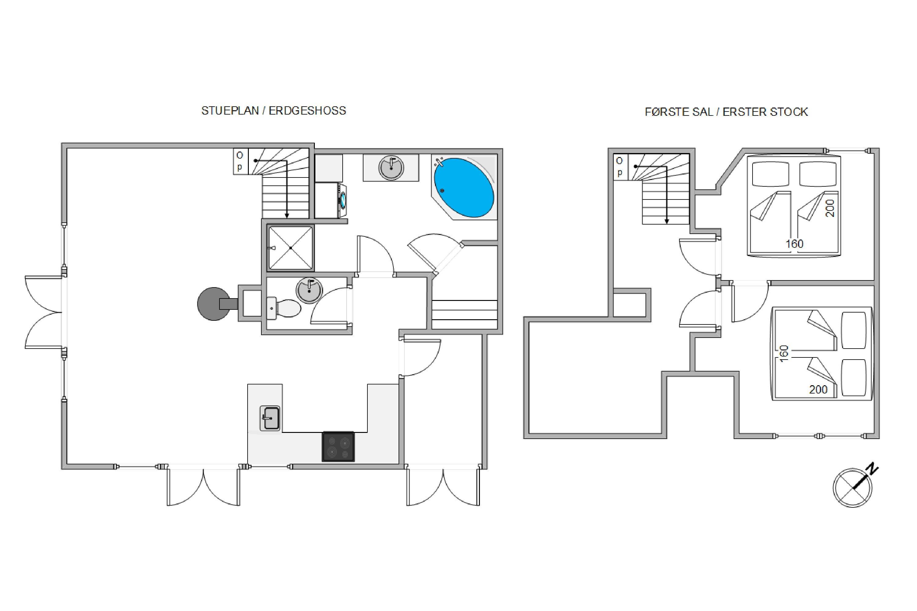 This 90-square-metre holiday apartment offers comfortable accommodation across two floors, perfect for small families, couples, or friends looking forward to cosy days in the heart of Søndervig. The holiday apartment features modern conveniences including a dishwasher, washing machine and tumble dryer, while the bright, modern kitchen invites shared meal preparation. Both bedrooms are located on the upper floor, with the main bathroom on the ground floor and an additional guest WC.
