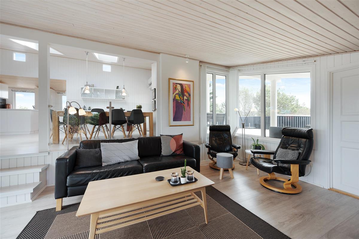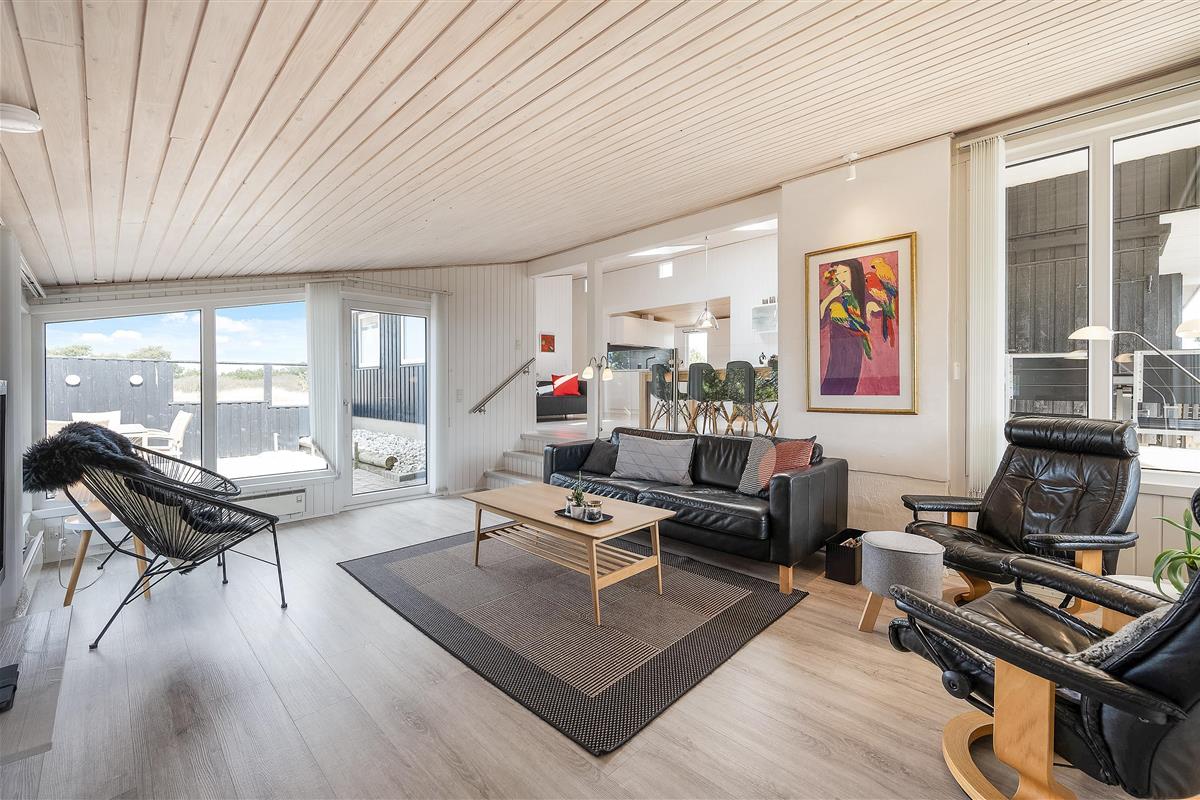 Located in one of Denmark's most popular holiday regions, the Holmsland Klit area sits alongside Ringkøbing Fjord. This wonderful holiday home at Wolle Friks Vej 19 offers generous accommodation of 112 square metres for up to 6 people, providing a cosy holiday retreat. The holiday home in Søndervig is charmingly and comfortably furnished, ensuring you'll feel at home straight away. The wood-burning stove and whirlpool provide perfect relaxation, while the sheltered, private terraces offer numerous spots to enjoy the sunshine and wonderful natural surroundings.