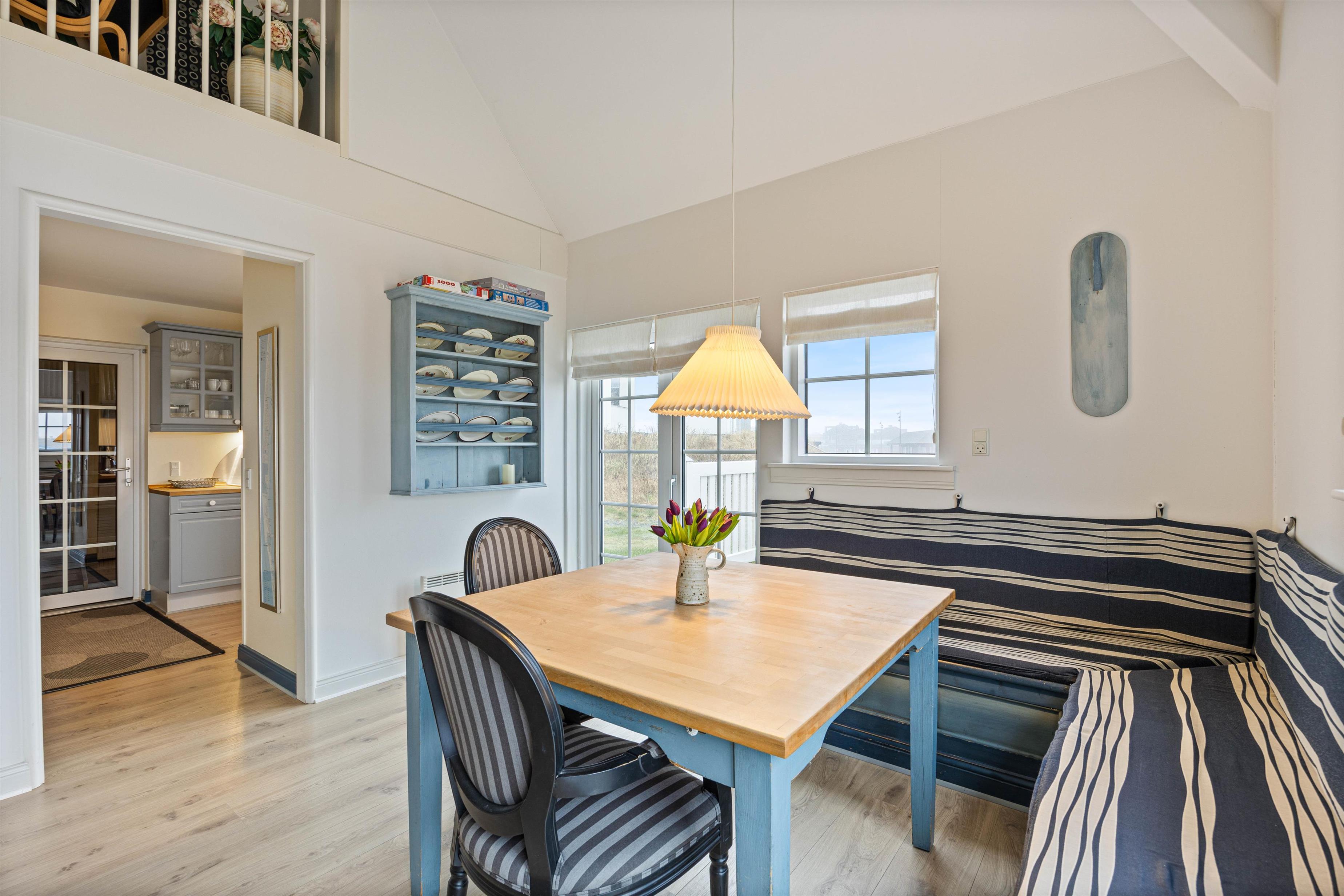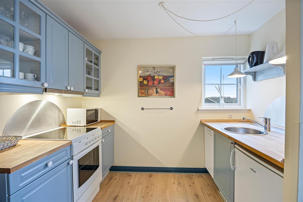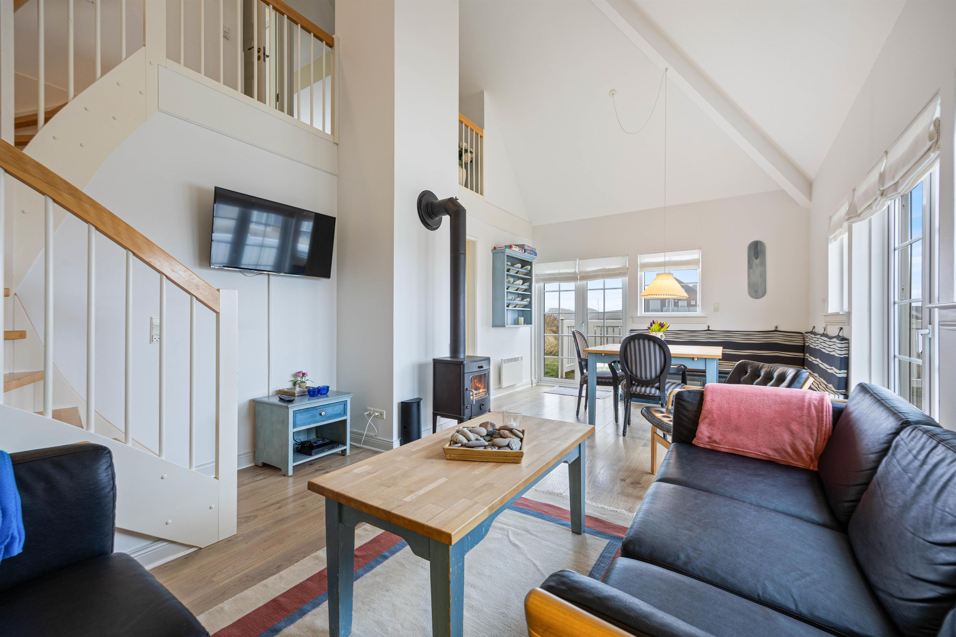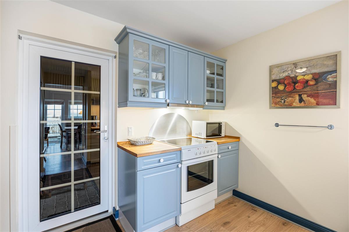 The fully equipped kitchen includes a dishwasher, giving you more time for life's important moments - like having a barbecue on one of the inviting terraces. On cooler days, make yourself comfortable in front of the cosy wood-burning stove and enjoy its crackling warmth. This beautifully furnished holiday apartment, sleeping four, features two comfortable bedrooms, each with twin beds. The rooms invite you to dream and guarantee a restful sleep after an exciting day by the sea.