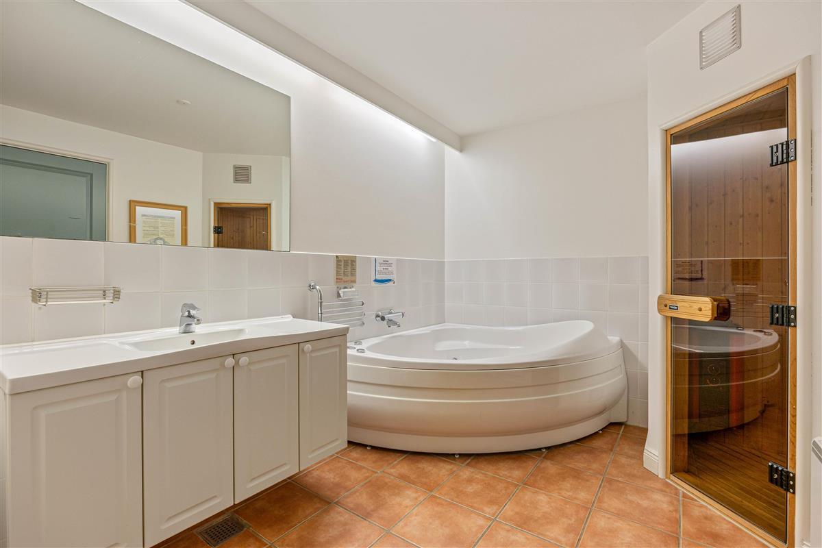 The bathroom, with underfloor heating, features a whirlpool for complete holiday relaxation. In the sauna, you can let your thoughts wander and unwind after a long beach walk. You'll also find a washing machine and tumble dryer, so you only need to pack your favourite clothes for your stay.