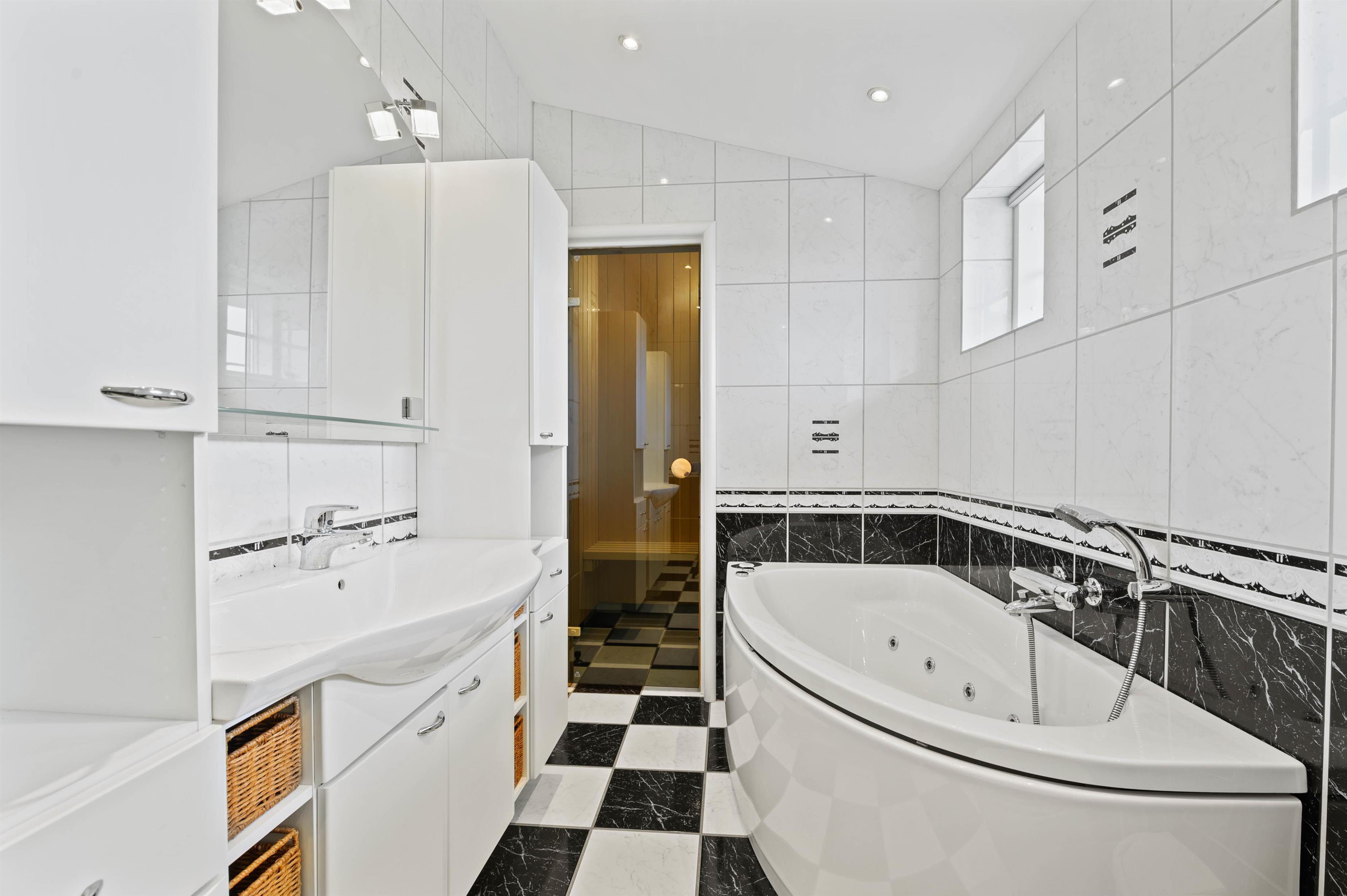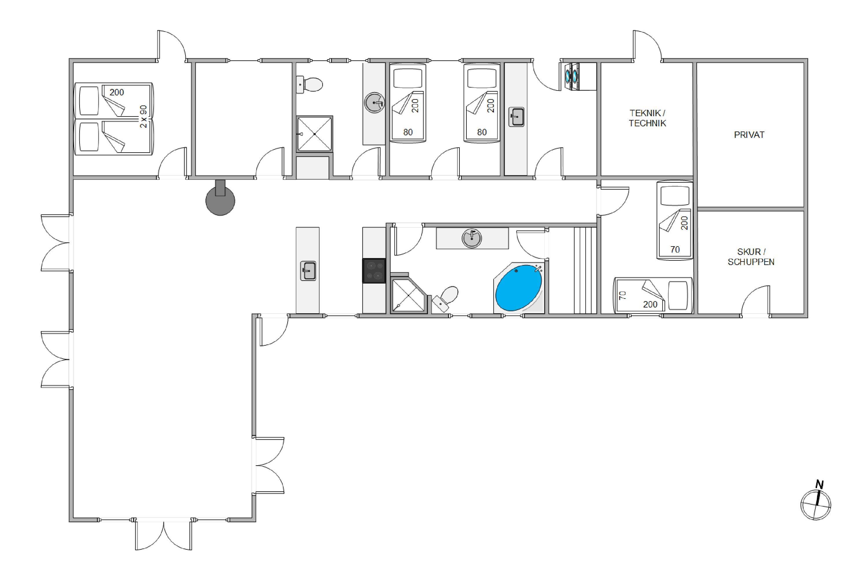There are 3 bedrooms and 2 bathrooms in total. One bathroom features a whirlpool and sauna where you can truly unwind. Both children and adults will love warming up in the whirlpool and sauna after a long day in the fresh air. Both bathrooms have underfloor heating, so you needn't worry about cold feet.