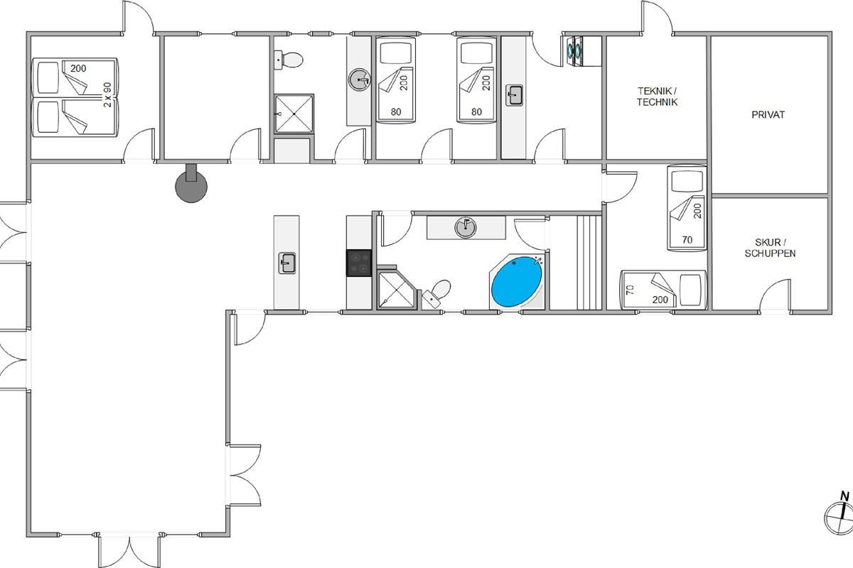 This holiday home is situated in the northern part of Søndervig, in a lovely, quiet holiday home area. This popular holiday region by Ringkøbing Fjord offers activities year-round, from long walks in the fresh air to various recreational pursuits. Take trips to the beach and the North Sea, just 300 metres from the house, where you can spend hours walking with your children and dog, or simply search for shells, amber, and stones with holes.