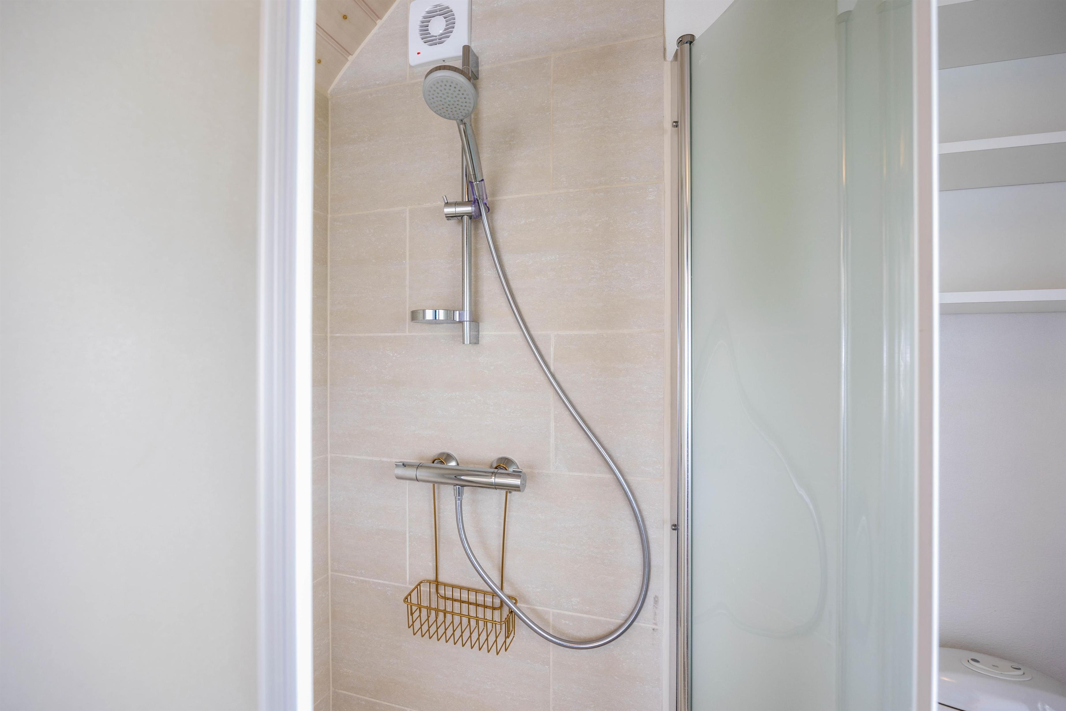 In the open kitchen, without a dishwasher, cooking and washing up together is really fun, and in the open living and dining area, you can plan your next activities or crown the champion of all classes during game night. With a delicious cold drink, you can relax in front of the crackling fireplace and reflect on the day. The integrated heat pump ensures energy-efficient heating, and the underfloor heating in the bathroom ensures that you don't get cold feet.