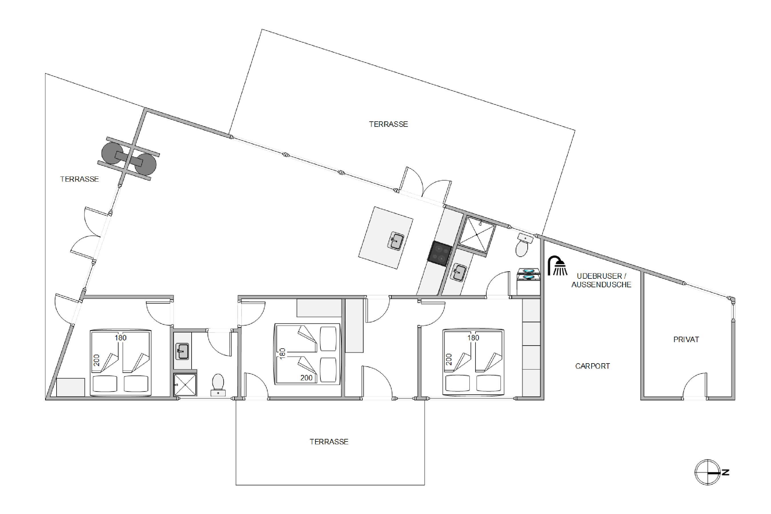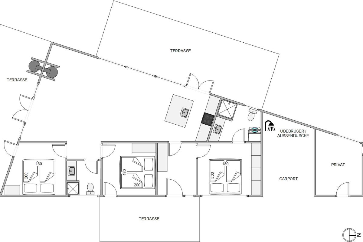 Three beautiful terraces and outdoor shower at Nordsøvej 422A