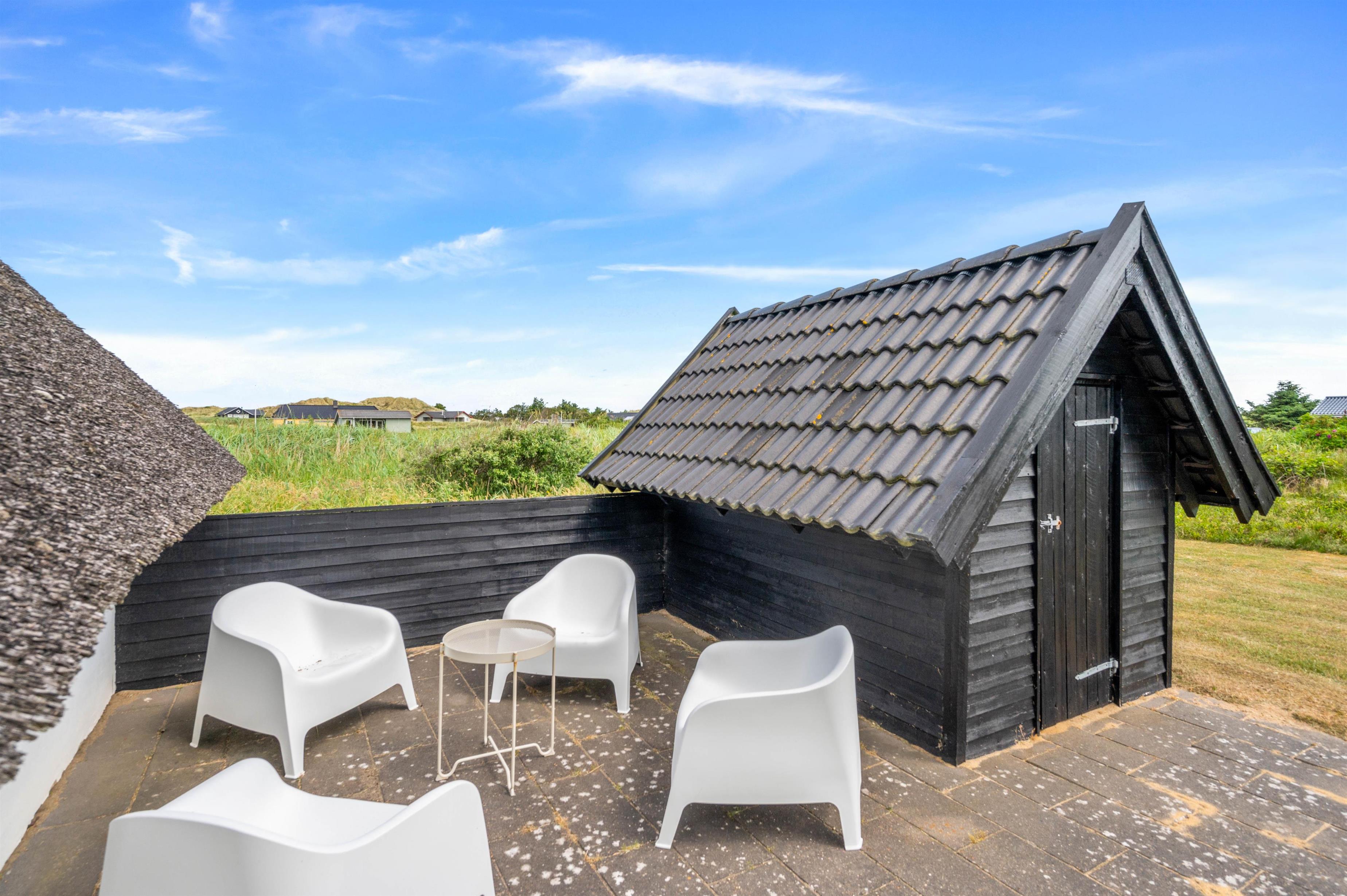 When the sun comes out, it's time to enjoy it. Fortunately, you'll have plenty of opportunity to do so on the holiday home's two terraces. One terrace faces south, where you can always find a sunny spot to enjoy the warmth. This terrace is partially covered, providing shade when needed.