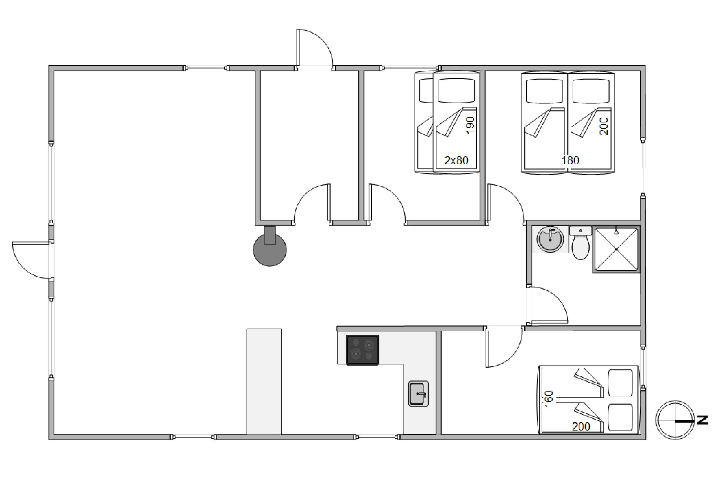 The holiday home features a spacious open-plan area combining the living room, kitchen and dining room. The living room forms the heart of the holiday home and is perfect for creating memorable family moments over delicious meals, fun games and enjoying films on the television. Light up the wood-burning stove to complete that cosy holiday atmosphere. The bathroom features underfloor heating, ensuring you won't start your day with cold feet.