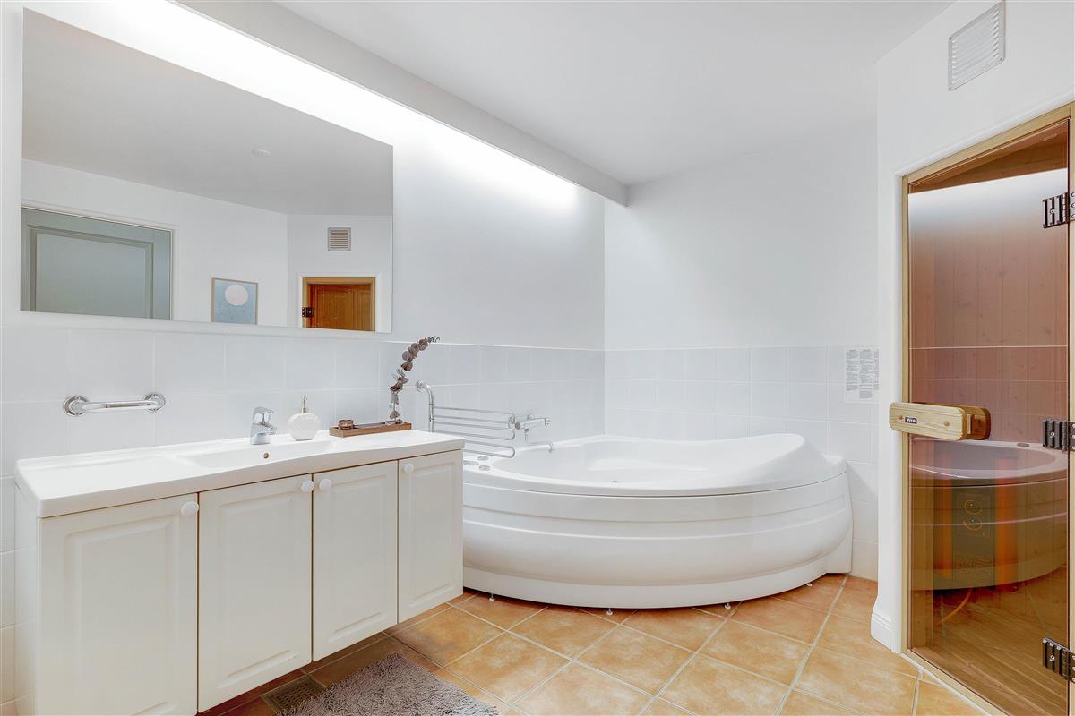 On the ground floor, you'll find the kitchen integrated into the living and dining area - the heart of the home where the whole family comes together. There is a large bathroom with sauna and whirlpool, plus a guest WC, both featuring underfloor heating.
