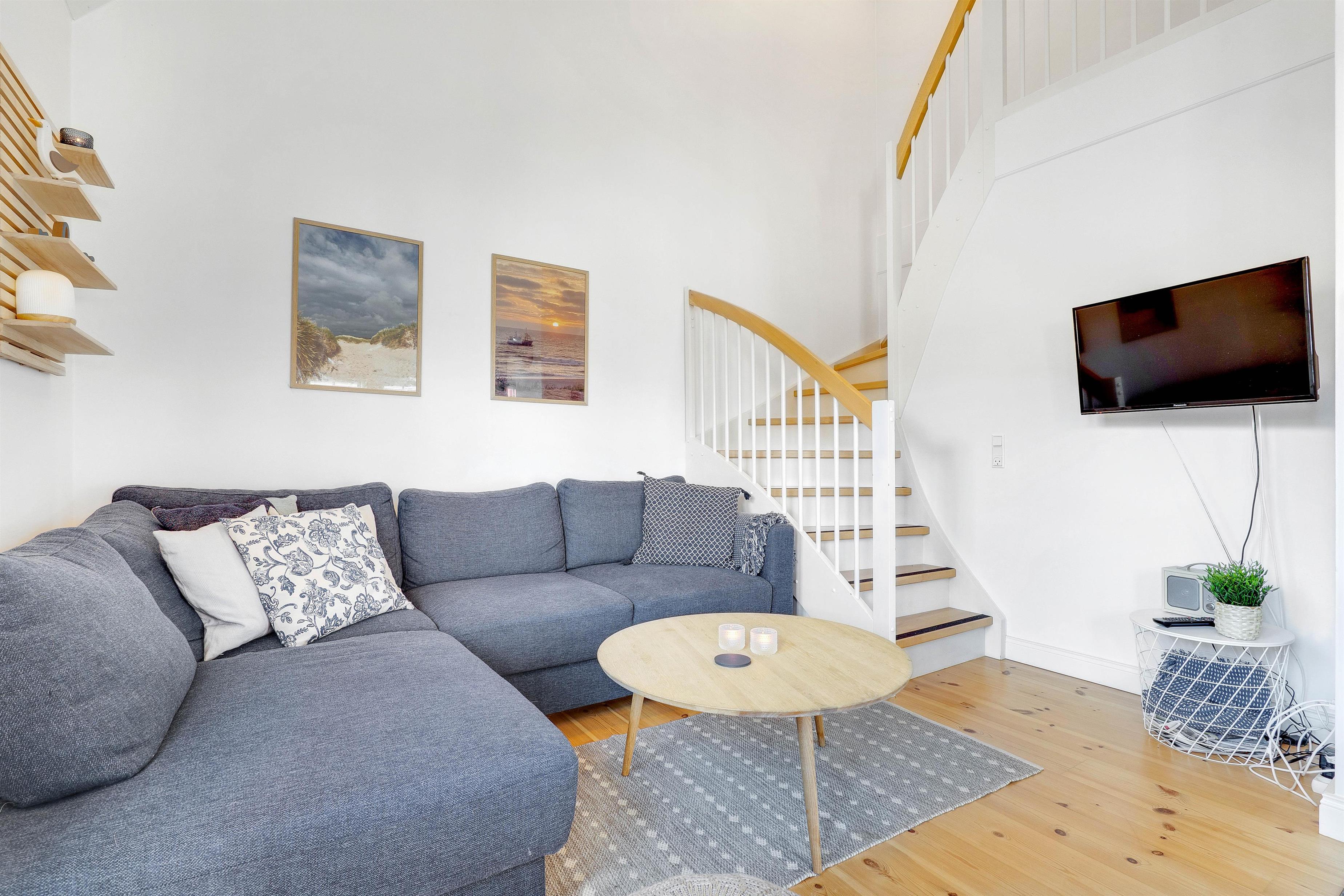 This charming two-storey holiday apartment is perfect for small families or couples seeking a stay close to both the town centre and the beach. The bright and inviting interior creates a relaxing atmosphere, while the wood-burning stove adds warmth and a cosy ambiance. Alternatively, the apartment’s air-to-air heat pump provides a comfortable, energy-efficient temperature throughout your stay.