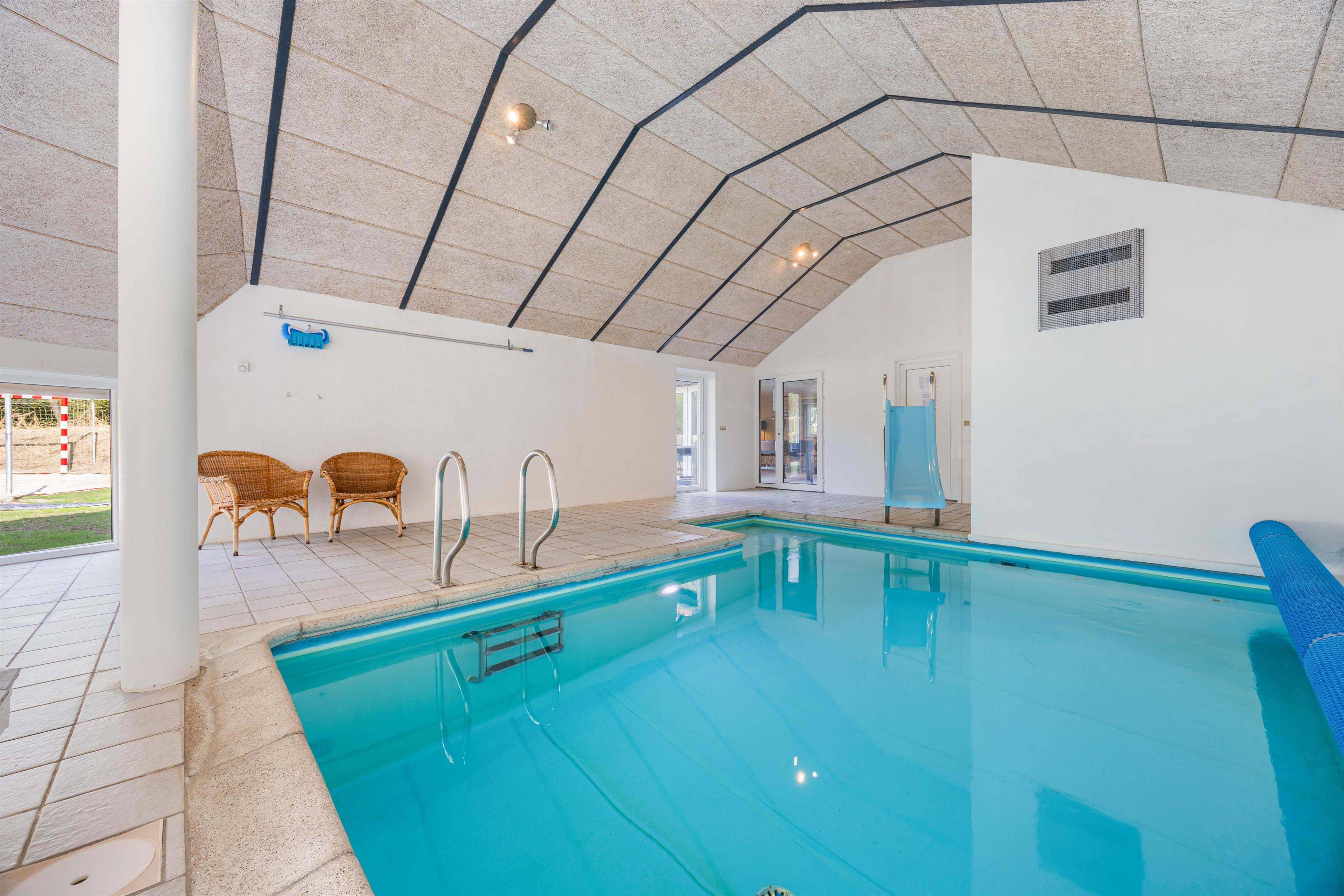 A special highlight of the holiday home is the impressive 17 m² pool located indoors. Whether you want to swim a few relaxed laps or simply splash around, the pool provides fun in the water in any weather. After cooling off, you can unwind in the standwater whirlpool or relax in the sauna. These luxurious amenities guarantee pure relaxation and invite you to leave everyday life behind.