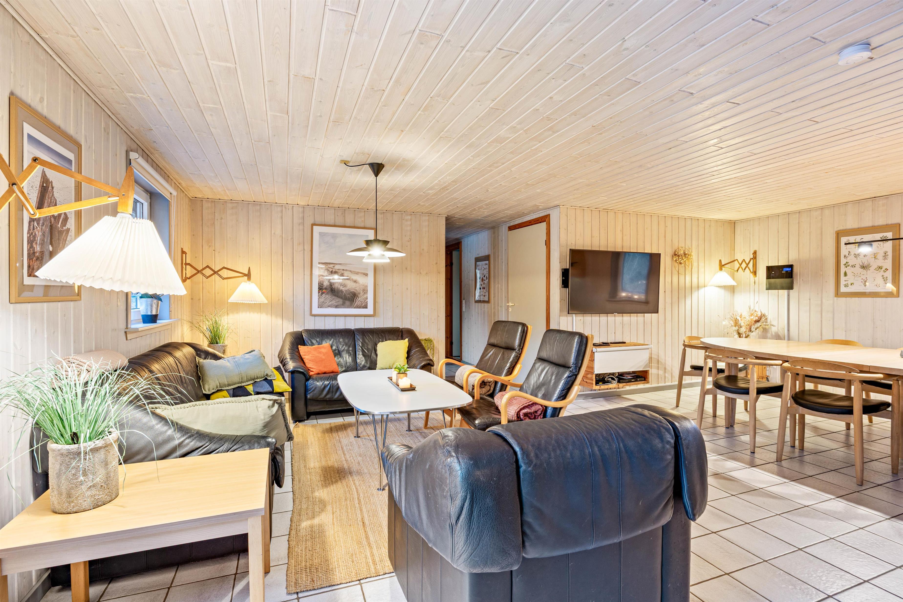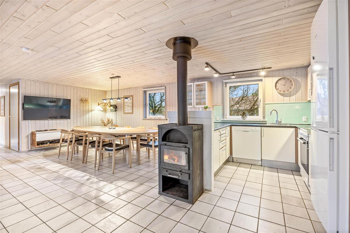 Here you can look forward to a spacious retreat with an open-plan living concept. The generous living area invites you to linger and is equipped with a cosy wood-burning stove. The large sofas offer plenty of space to relax together or wind down the evening with a good film. The dining area is just as inviting and, thanks to its layout, offers enough space for all guests to dine together and enjoy unforgettable holiday days.