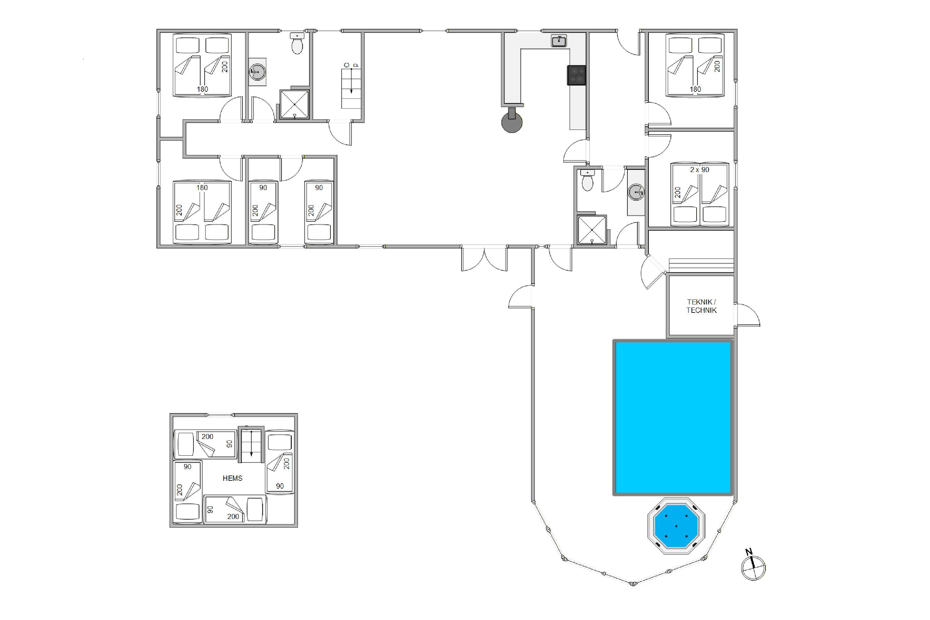 The holiday home offers a total of five bedrooms, four of which are furnished with a double bed each, and one bedroom with two single beds. You will find four additional sleeping places on the cozy sleeping loft. Your kids will love it. Two bathrooms with underfloor heating ensure a cosy feeling even on cooler days and invite you to start the day in a relaxed way.