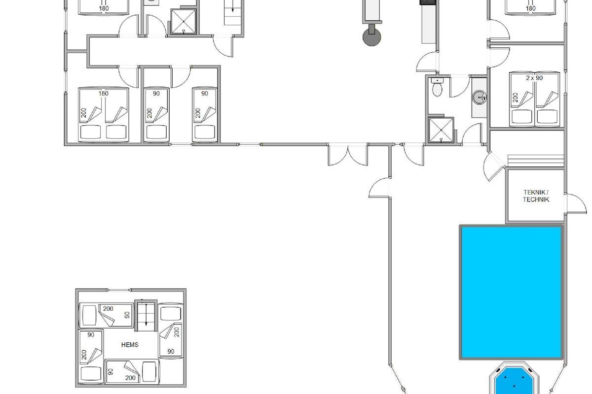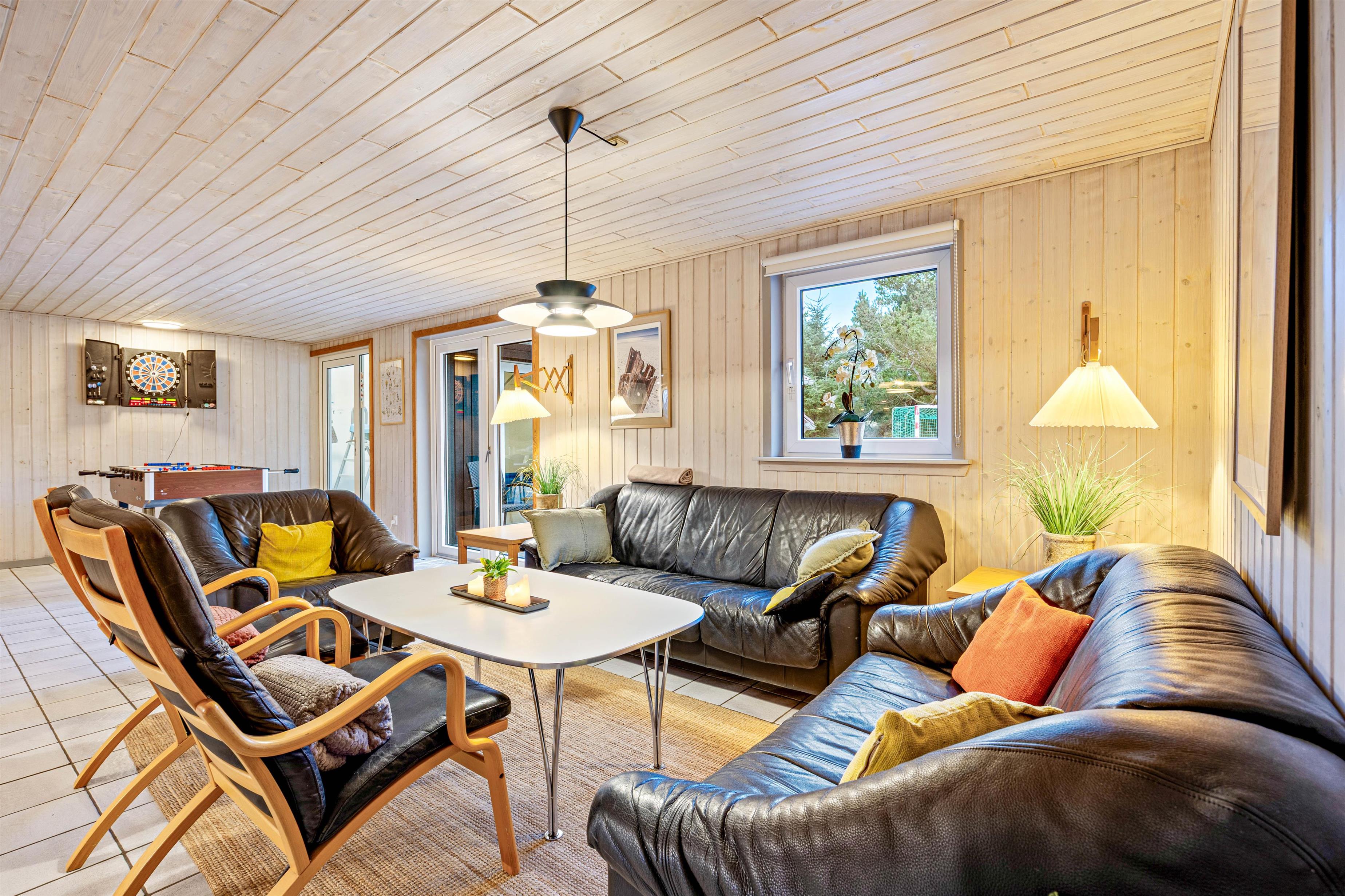 At Krattet 15, just outside Søndervig, you will find this beautiful and spacious pool house, offering room for up to 14 people and 3 pets. The roomy holiday home is equipped with a lovely swimming pool. The good location of the holiday home also ensures that you stay in a quiet area, while still not being too far from the charming seaside resort of Søndervig.