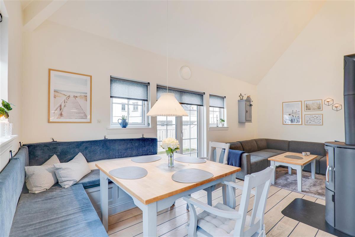 It's just 200 metres to the beach, perfect for long coastal walks. Take a morning stroll to refresh yourself for the day ahead, perhaps picking up fresh rolls on your return. When you don't feel like cooking in the evening, there are several restaurants offering delicious menu options. Treat yourself to soft ice cream and stroll through the bustling village in warm weather, soaking up the holiday atmosphere. Winter brings a quieter charm to the area.
