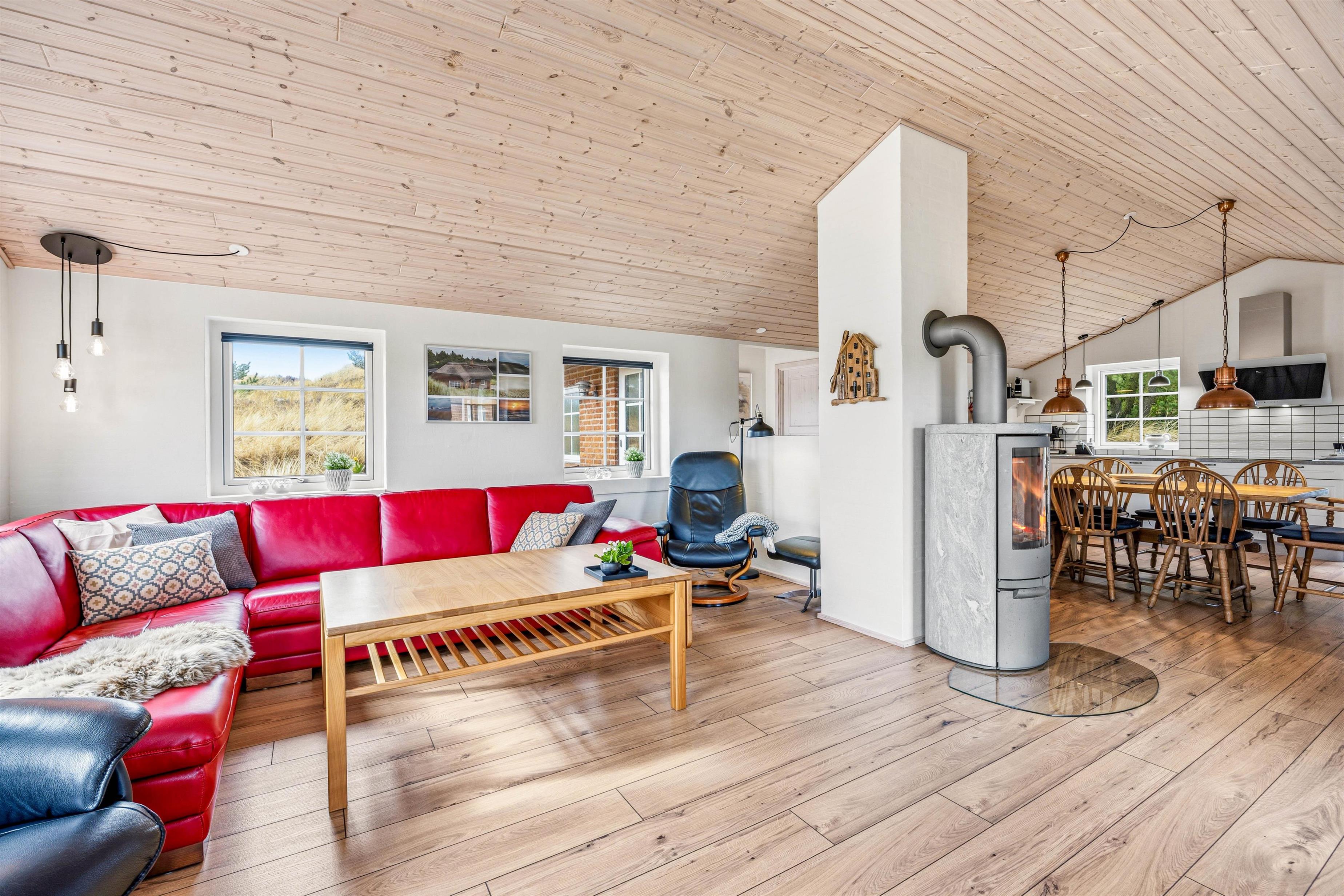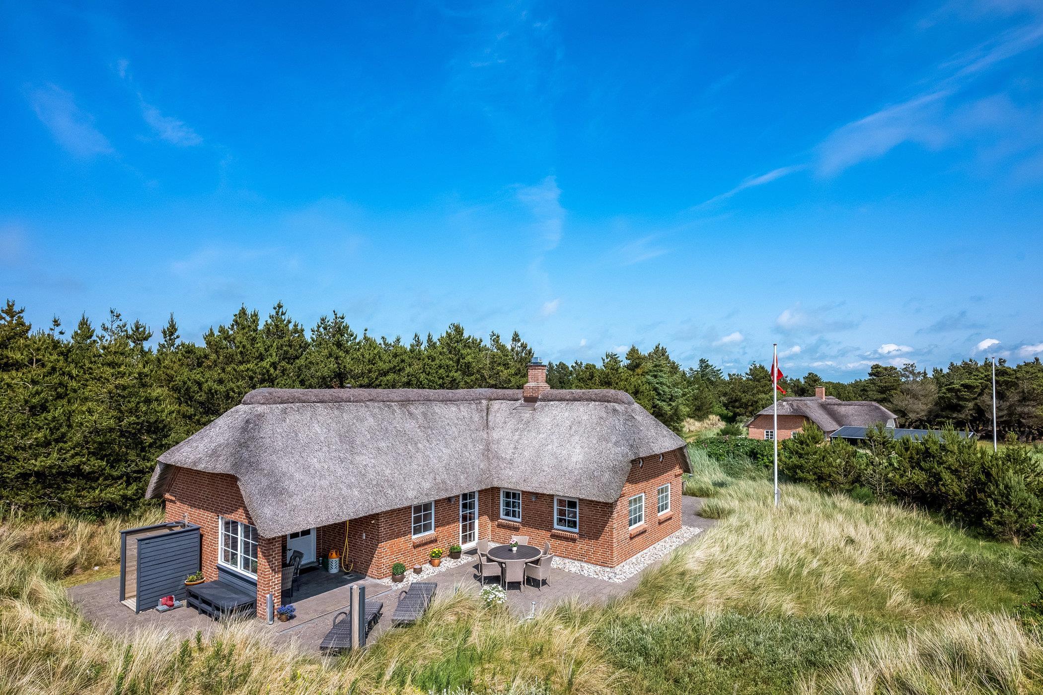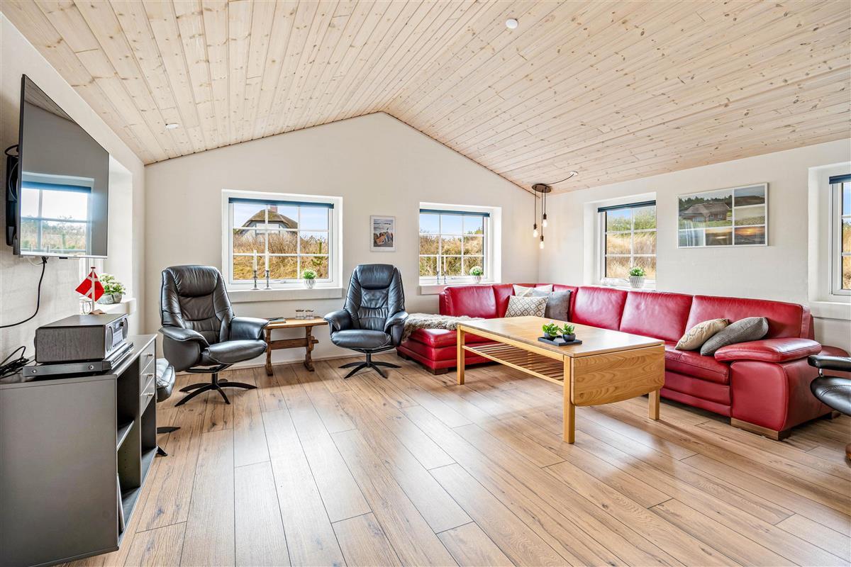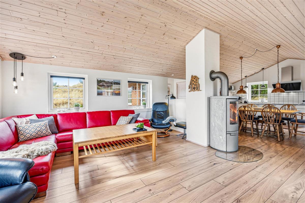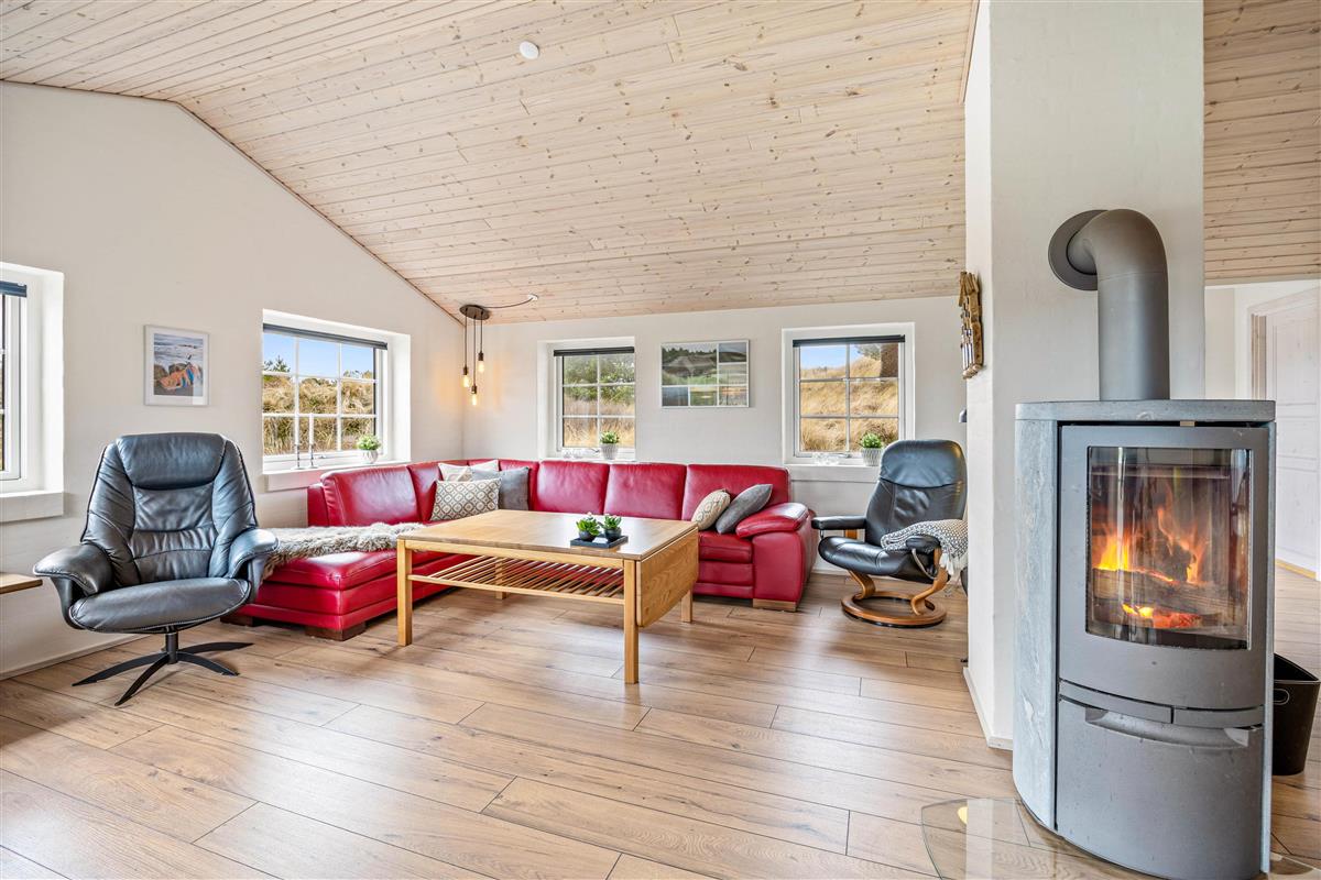 Are you looking for a holiday home located between the sea and the fjord, surrounded by beautiful nature and wildlife? Then Marehalmen 28 is a great choice. The holiday home offers 112 m² of living space and can accommodate up to 8 guests. It is located on a sheltered and private dune plot, only 900 metres from the North Sea and the West Coast cycling route.