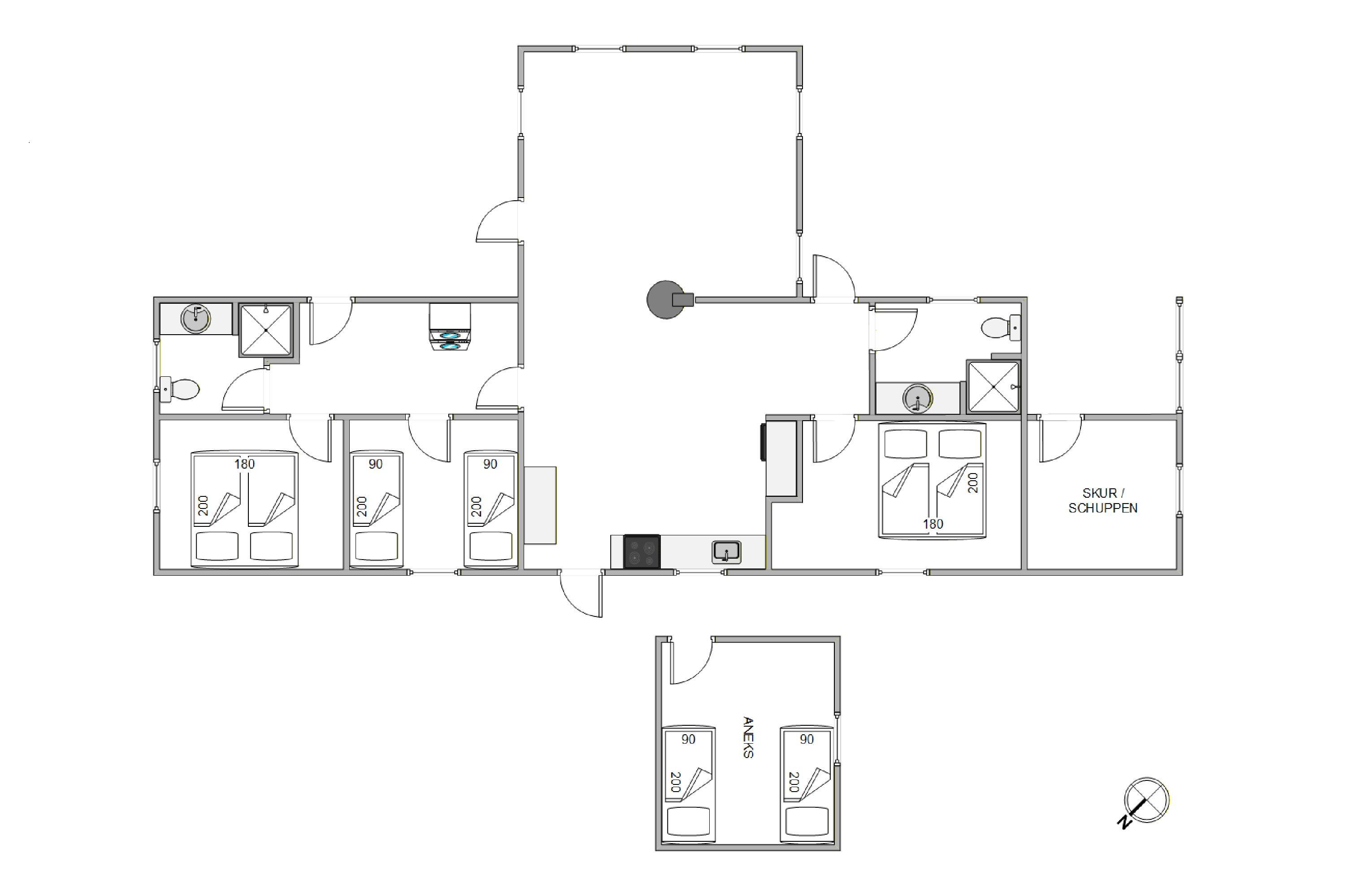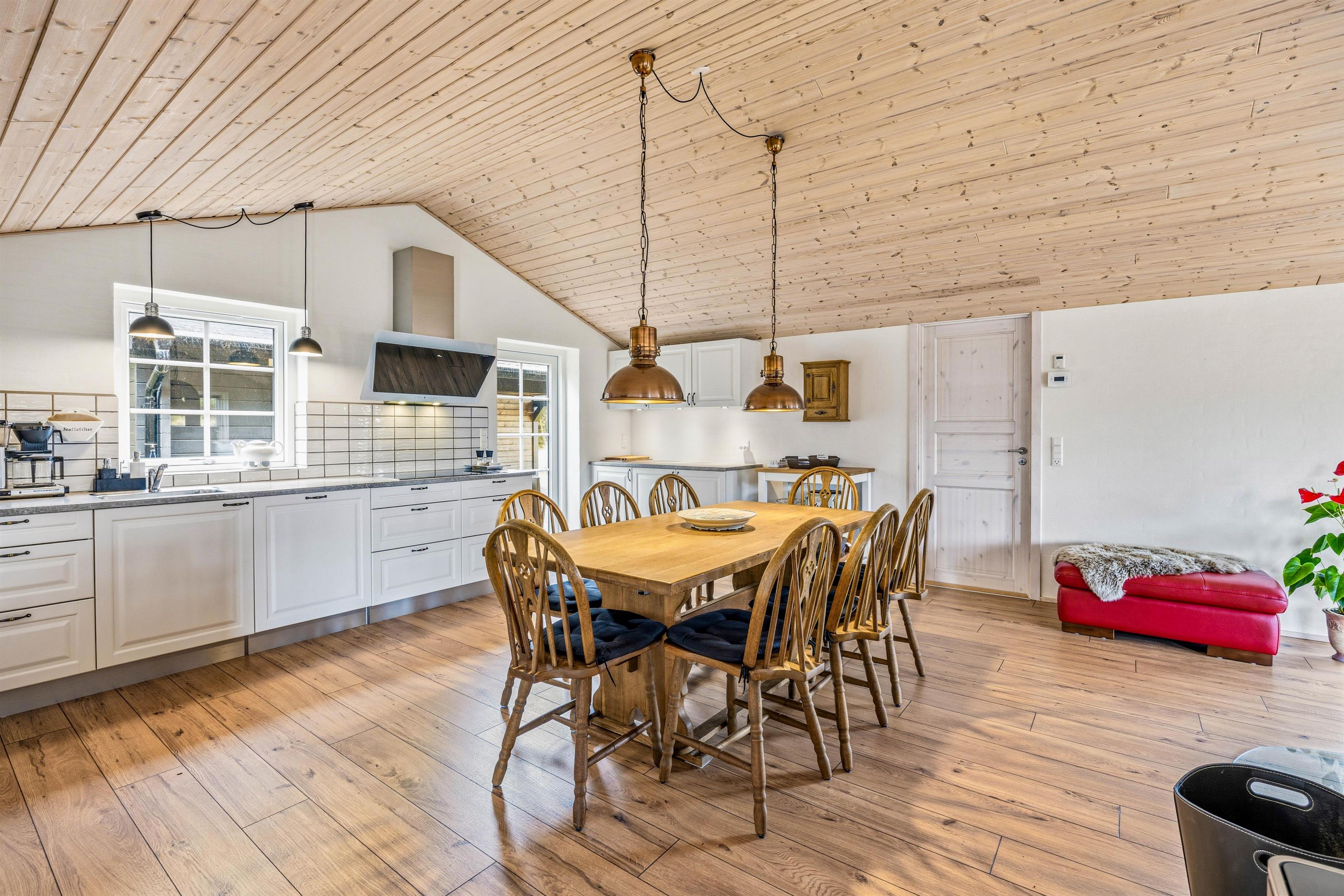 The spacious kitchen and living area create the perfect setting for relaxing and spending time together. The well-equipped kitchen includes a dishwasher, a traditional coffee machine and a Nespresso capsule machine. The living area offers space for cosy evenings on the sofa, board games at the dining table or watching a movie. The house has three TVs, and the TV in the living room includes Chromecast, allowing you to stream your favourite movies or series if you have streaming services.