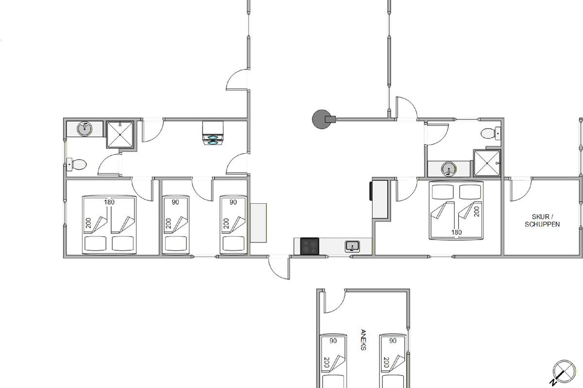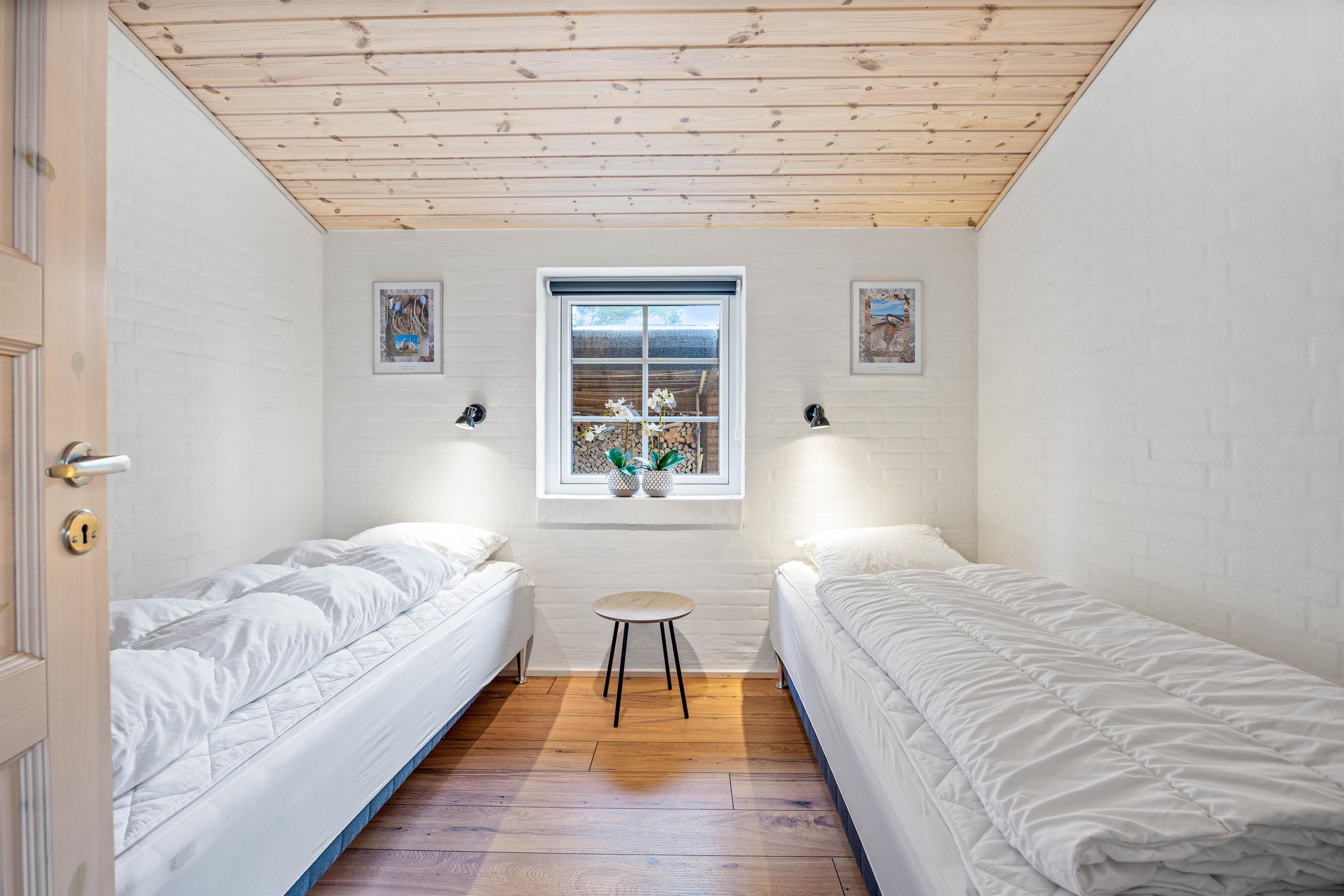 The holiday home has three bedrooms in the main house. Two bedrooms are furnished with double beds, while the third bedroom has two single beds. The fourth sleeping area is located in a heated and insulated annex with two single beds, making it ideal for extra guests.