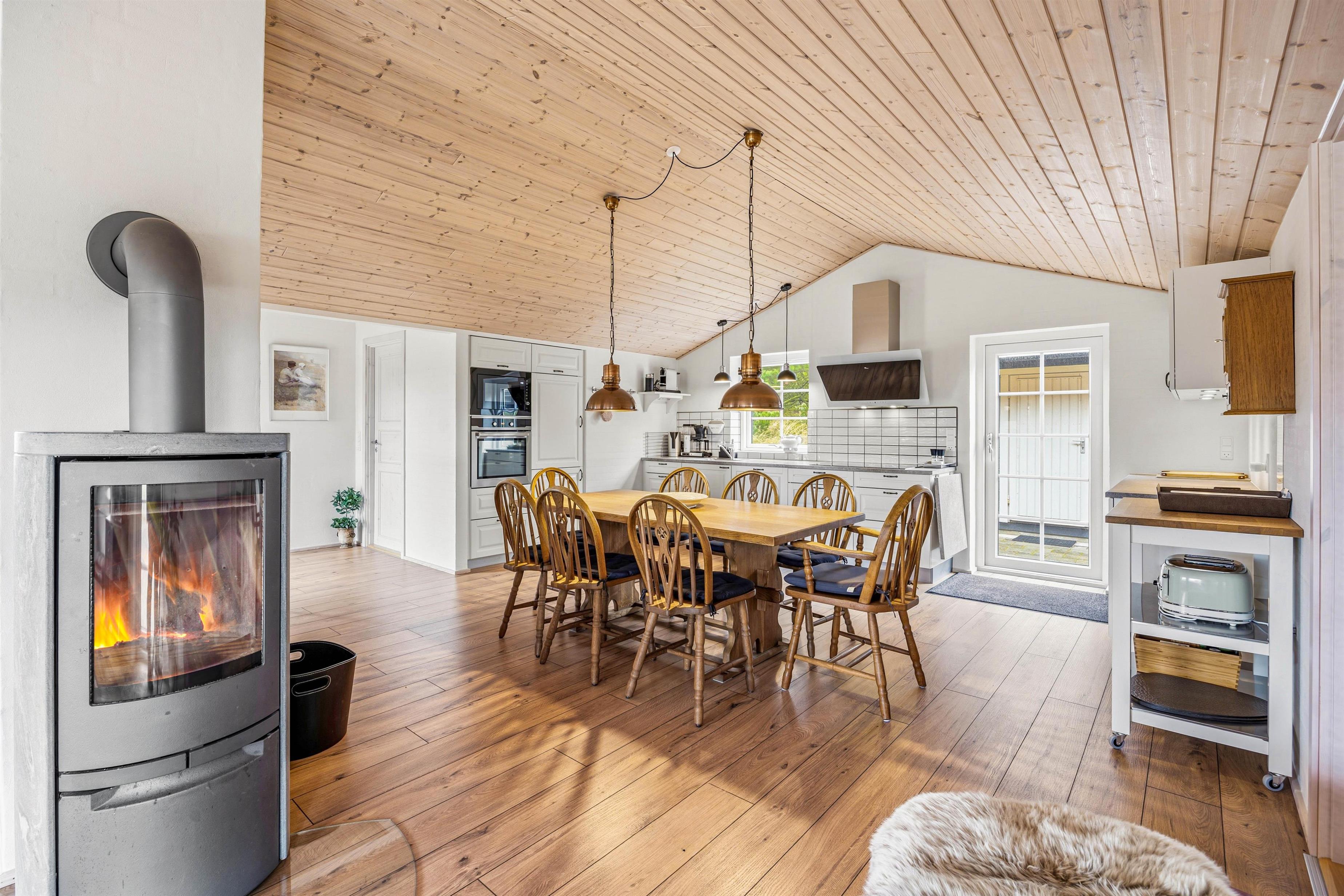 On cooler days you can light the wood-burning stove and enjoy the cosy atmosphere. There is underfloor heating in the entire house, ensuring a comfortable indoor climate throughout the year.