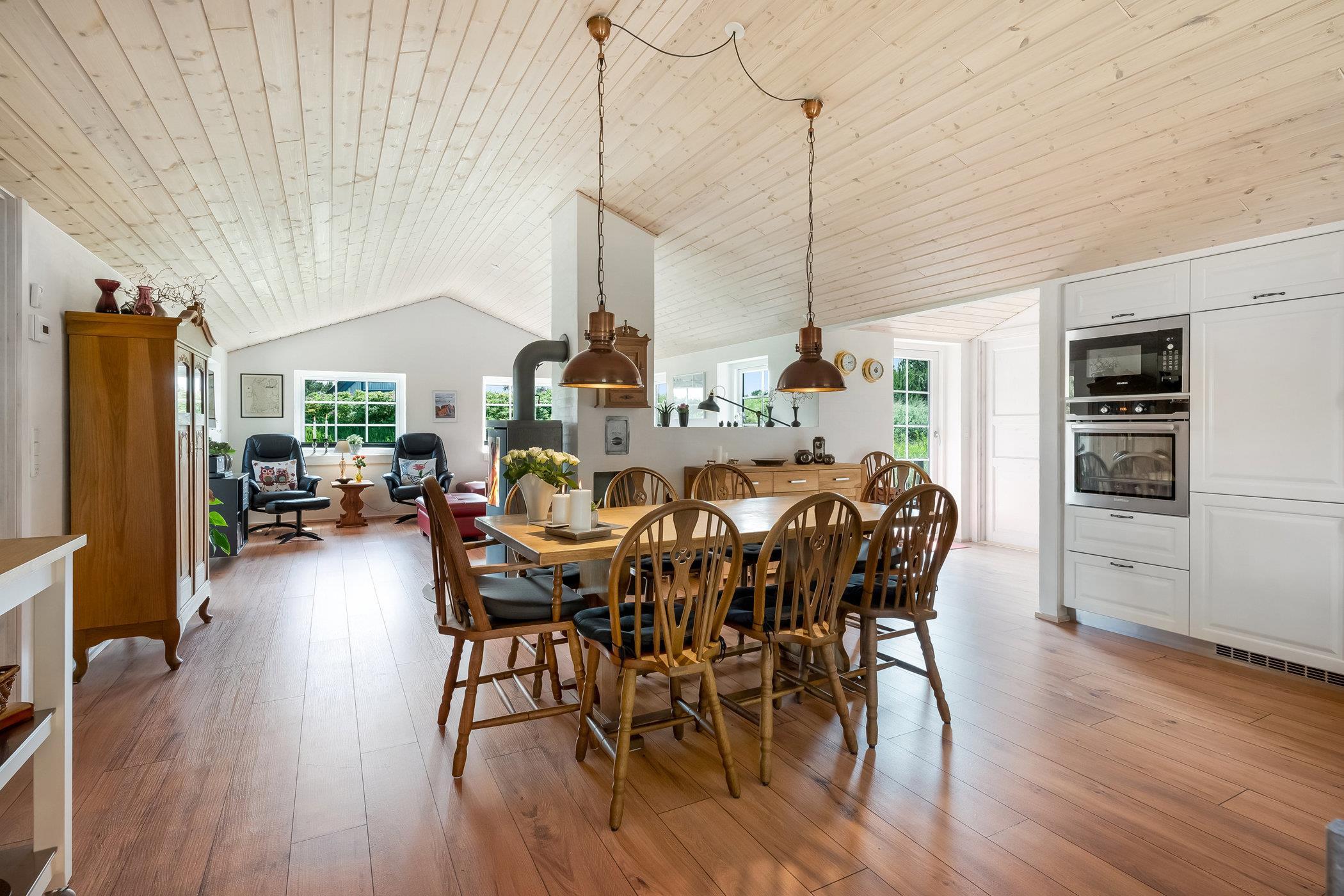 Im Herzen des Wohnraums lädt ein Holzofen dazu ein, wohlige Wärme und eine entspannte Atmosphäre zu schaffen. Lehnt euch zurück und genießt das sanfte Knistern des Feuers. Am großzügigen Esstisch finden alle Platz, um gemeinsame Mahlzeiten zu zelebrieren. Unterstützt von einer modernen Wärmepumpe garantiert der Wohnbereich ein angenehmes Raumklima zu jeder Jahreszeit, sodass ihr euch jederzeit wohlfühlen könnt.