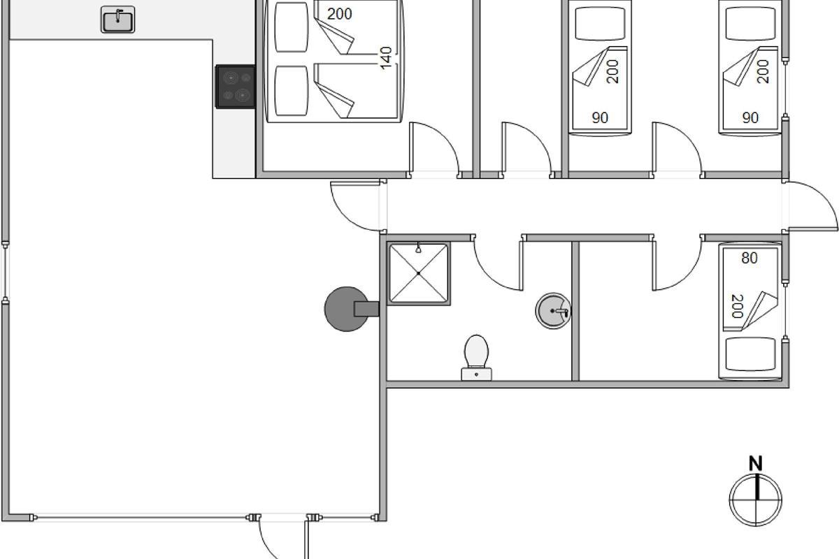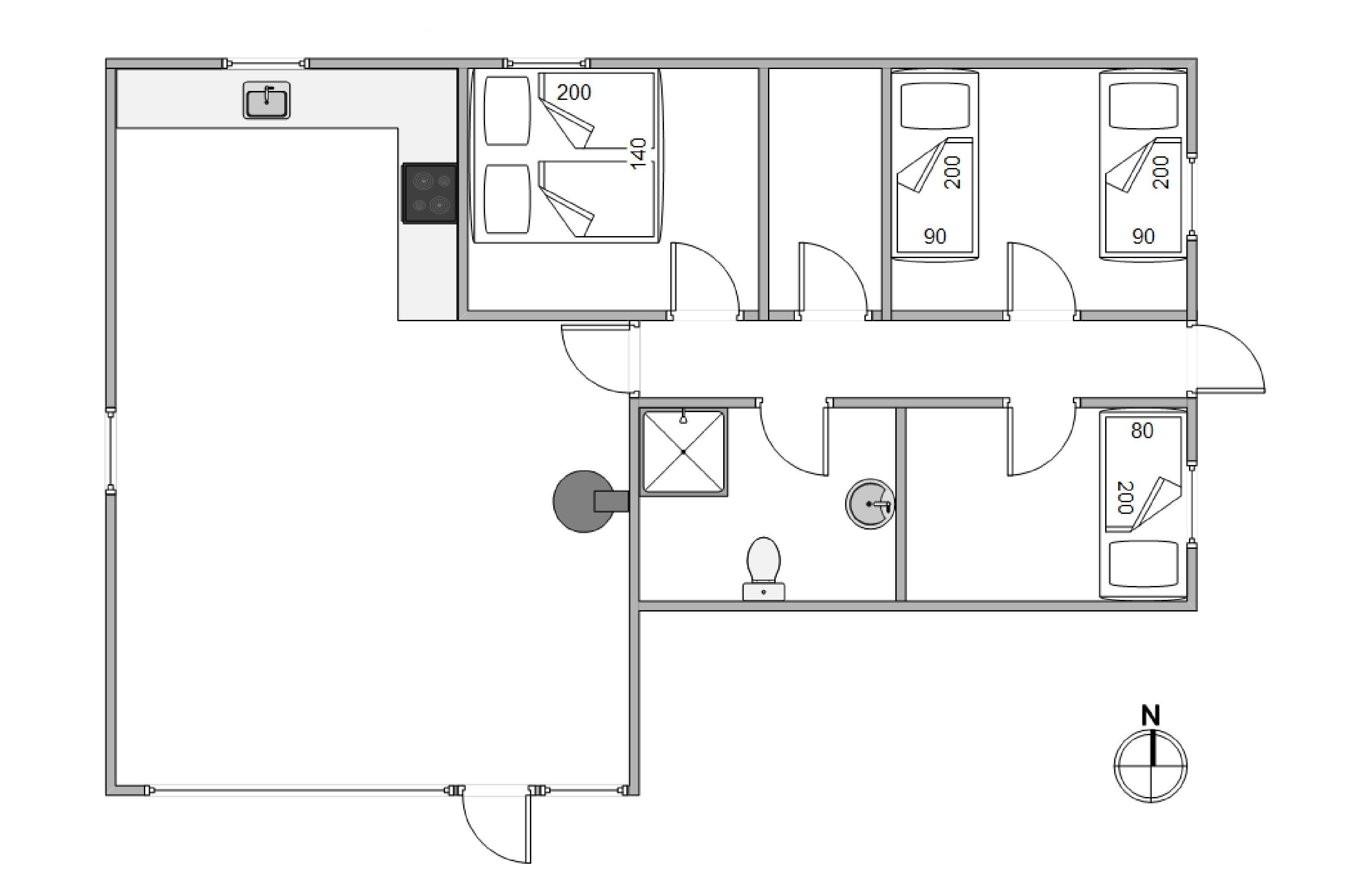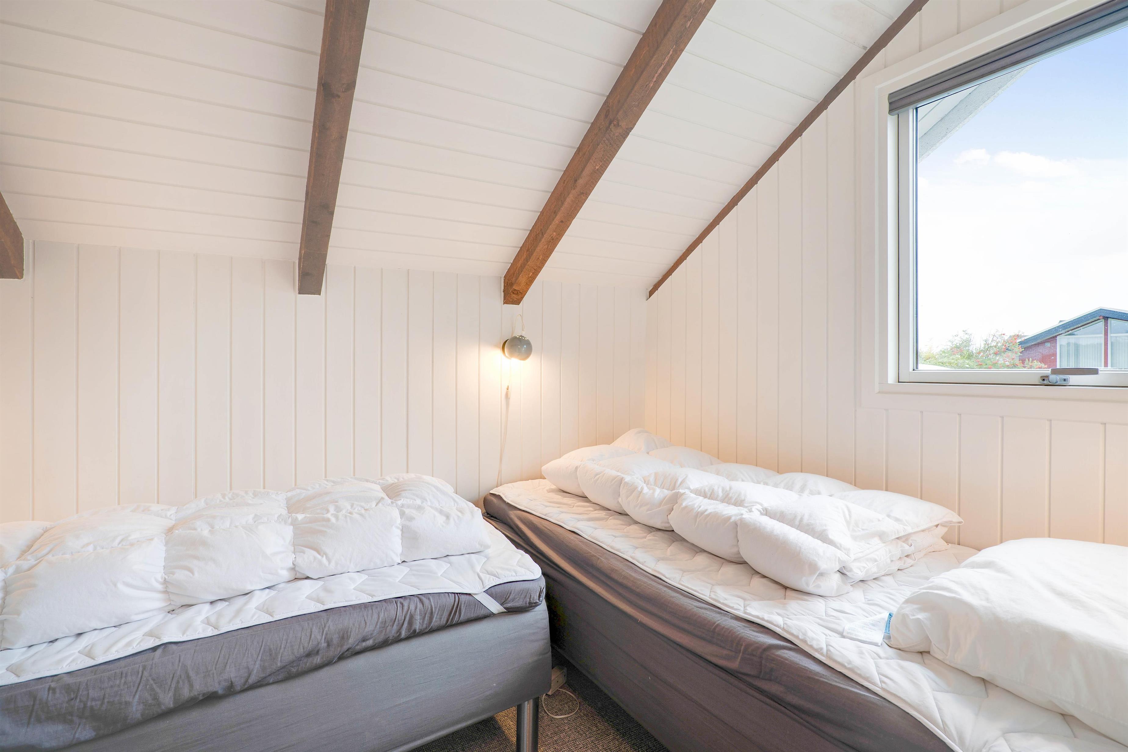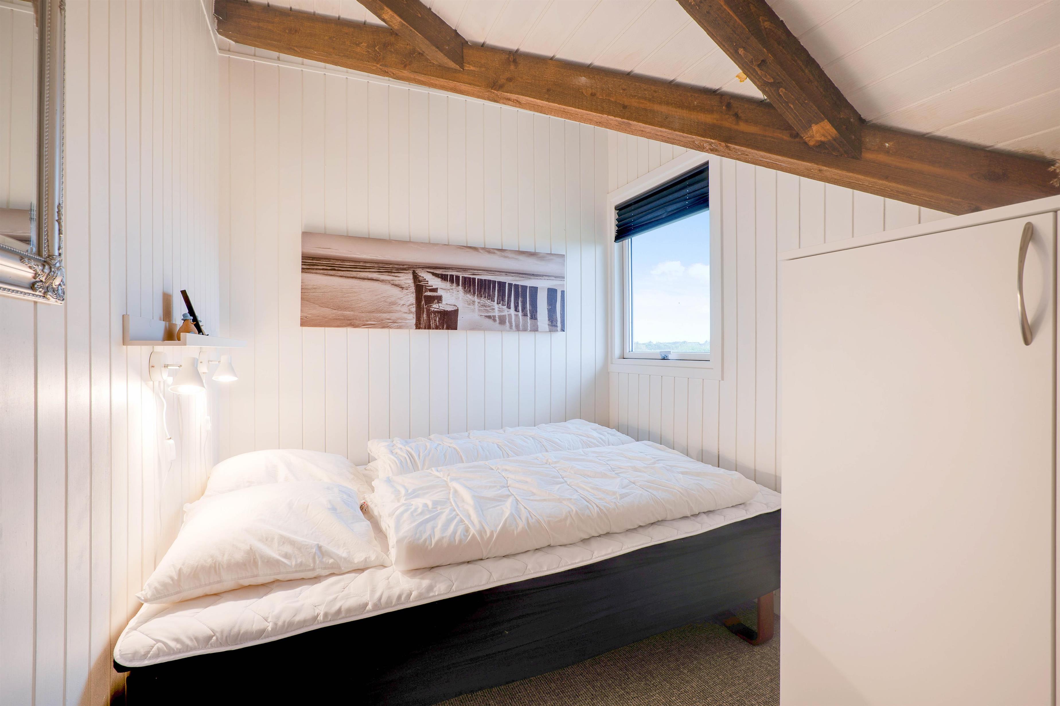 The holiday home has three bedrooms in total. One bedroom features a double bed, while the second has two single beds. The third bedroom is furnished with a single bed, allowing children to have their own space during your stay. There's also a bathroom with shower, washing machine and underfloor heating.