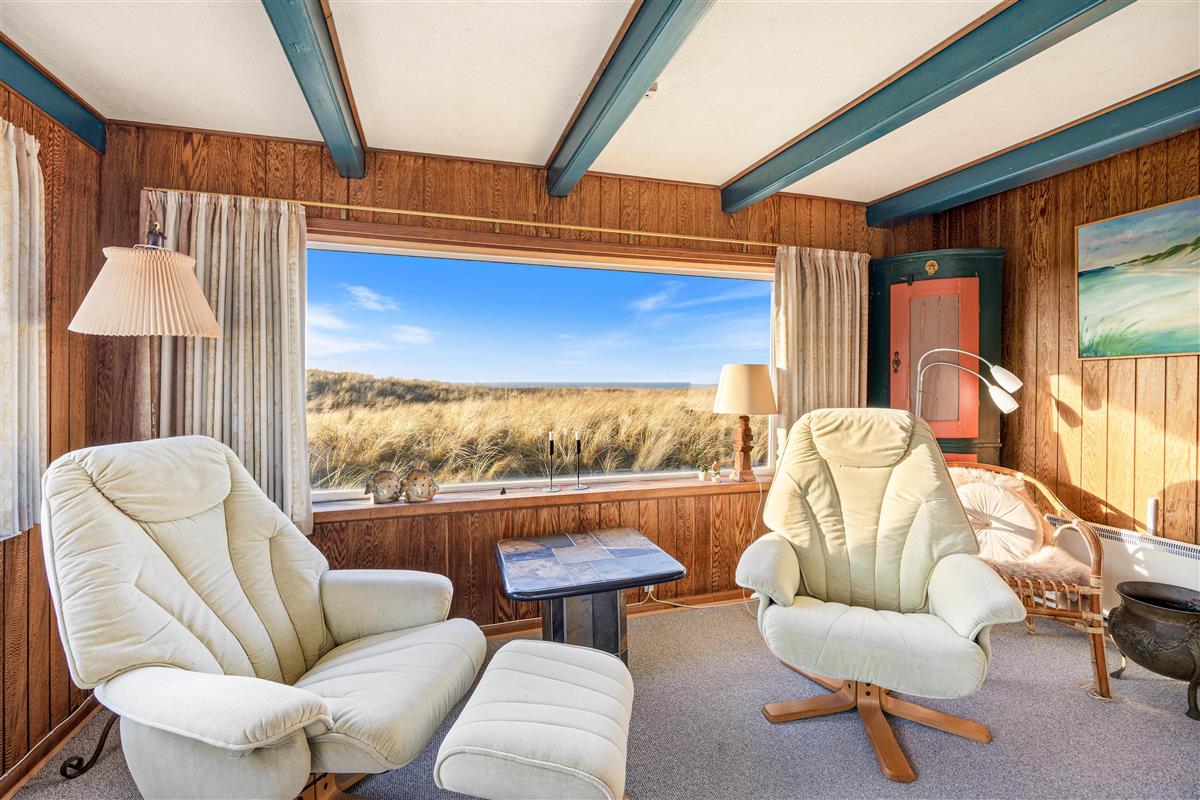 Wenn ihr das Wohnzimmer betretet, sticht euch als Erstes das große Fenster ins Auge, das euch einen atemberaubenden Blick auf die Dünenlandschaft bietet. Hier könnt ihr abends sitzen und ein echtes Naturspektakel erleben, den wunderschönen Sonnenuntergang in all seinen Farben.