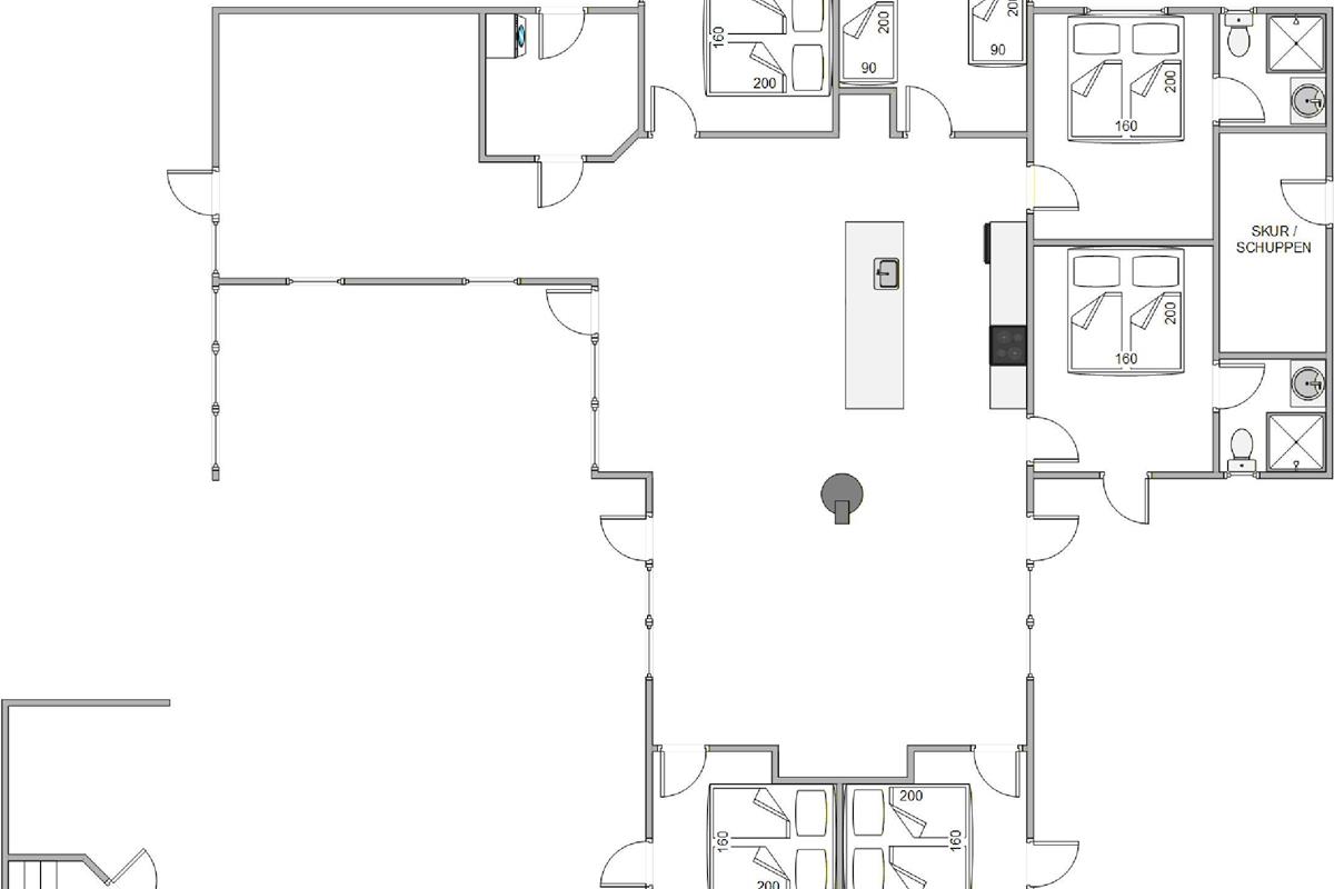Das Ferienhaus verfügt über sechs komfortable Schlafzimmer, die mit fünf Doppelbetten und zwei Einzelbetten ausgestattet sind. So finden bis zu zwölf Personen komfortabel Platz. Jedes Schlafzimmer bietet durchdachte Details für einen erholsamen Schlaf. Das Ferienhaus bietet sechs Bäder mit Fußbodenheizung, somit ist sichergestellt, dass keiner hier auf jemanden warten muss und ihr jeden Morgen frisch und erholt in den Tag starten könnt.