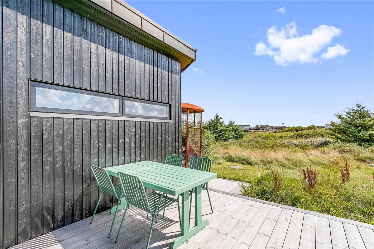 The holiday home at Wolle Friks Vej 22 in Søndervig sits on a 2,000-square-metre natural plot. Adjacent to the house, you'll find a spacious terrace offering plenty of room for sunbathing and relaxation. Make yourself comfortable on the garden furniture, unwind and enjoy the fresh sea air. Part of the terrace is covered, ensuring everyone can find their perfect spot, whether in sun or shade. In the evening, you can round off a perfect holiday day with a delicious dinner from the gas barbecue.