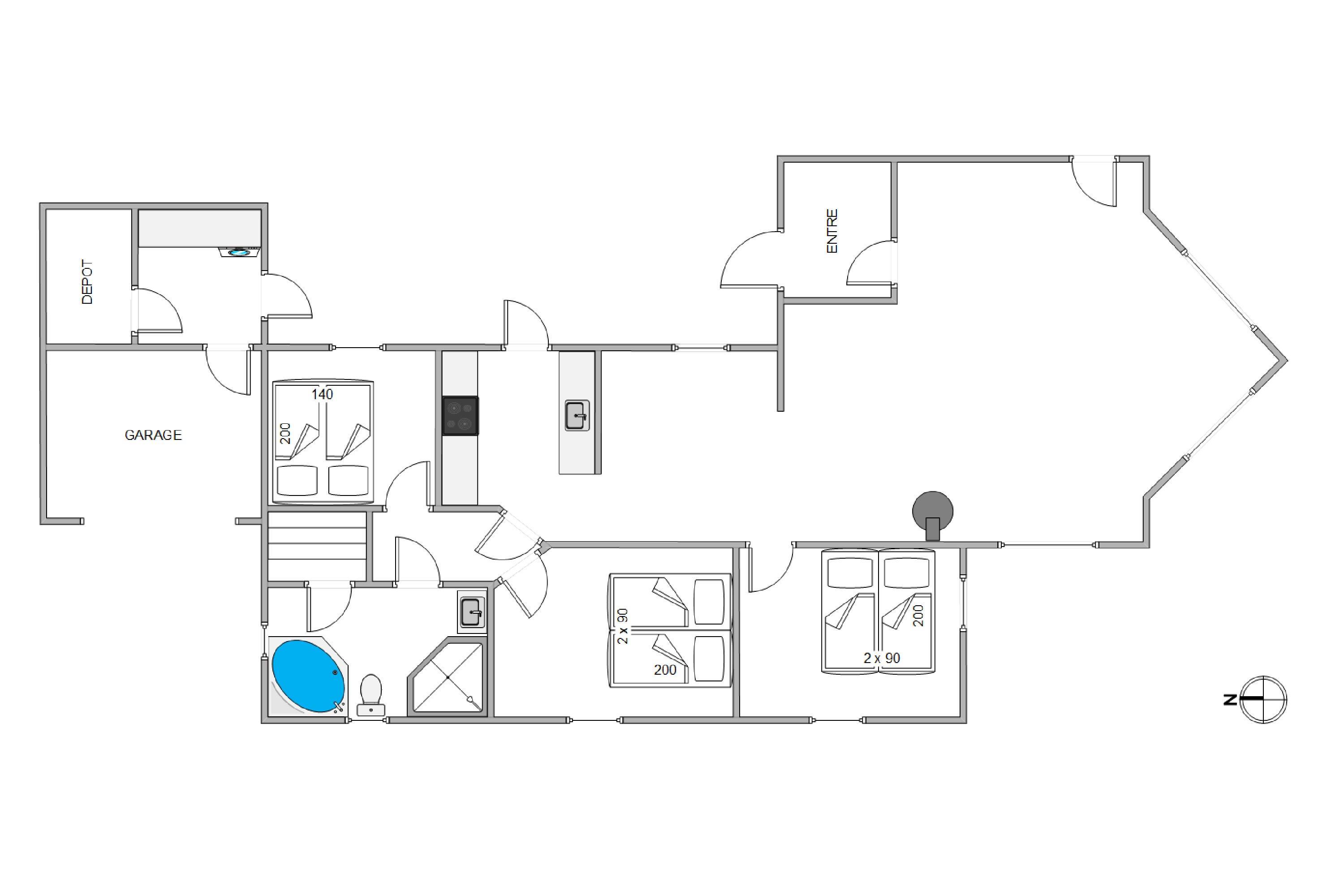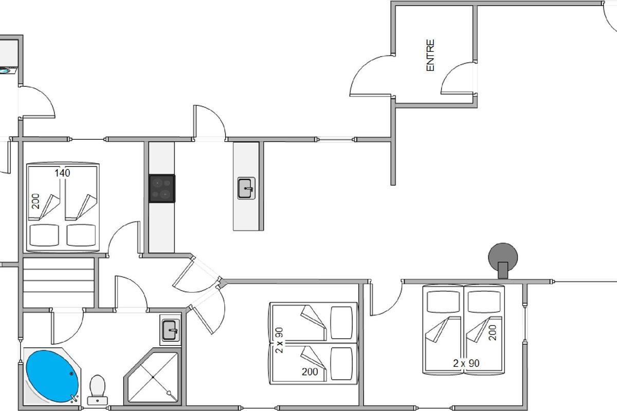 The holiday home features three bedrooms and a bathroom that was renovated in 2022. A sauna and hot tub provide perfect relaxation opportunities to recharge during your holiday. The lovely living room connects directly to the kitchen, making it easy to cook together or plan your holiday activities.