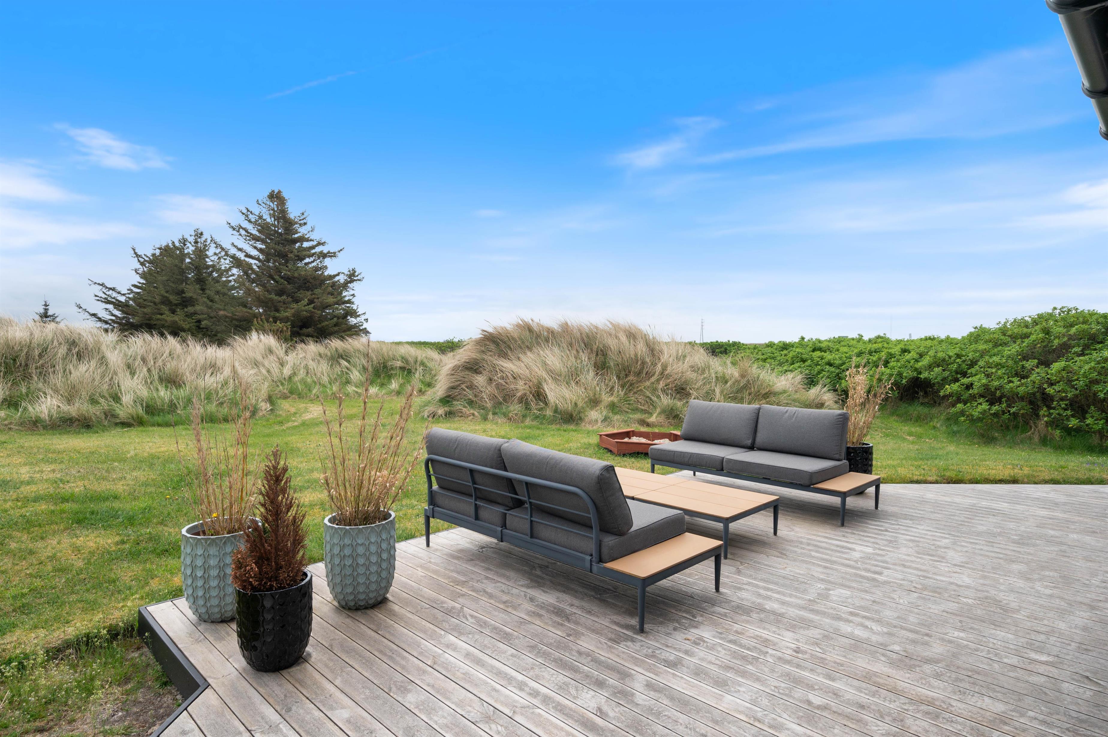With a holiday address at Frans Julius Vej 8 in Søndervig, you'll enjoy a beautiful natural plot of over 2,200 square metres for playing and exploring. The garden is nestled within the dune landscape, where both dogs and children will love to play. Meanwhile, you can enjoy a cool drink or cup of coffee on the lovely wooden deck.