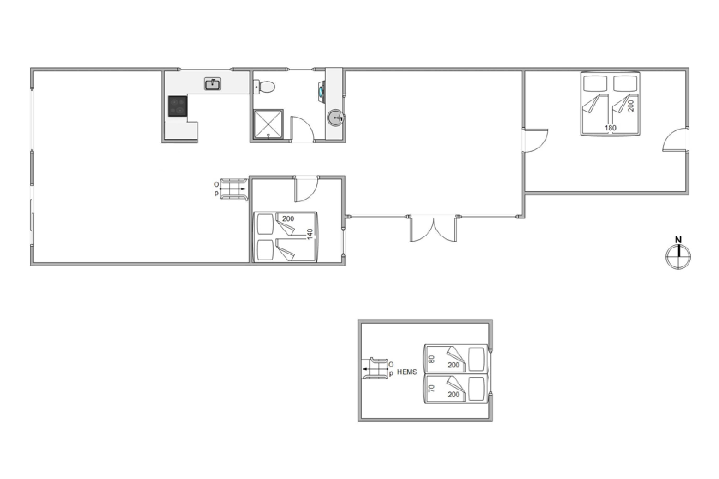 The holiday home has two comfortable bedrooms and a loft with a double bed. You'll also find a bright and beautiful bathroom with heated tile flooring.