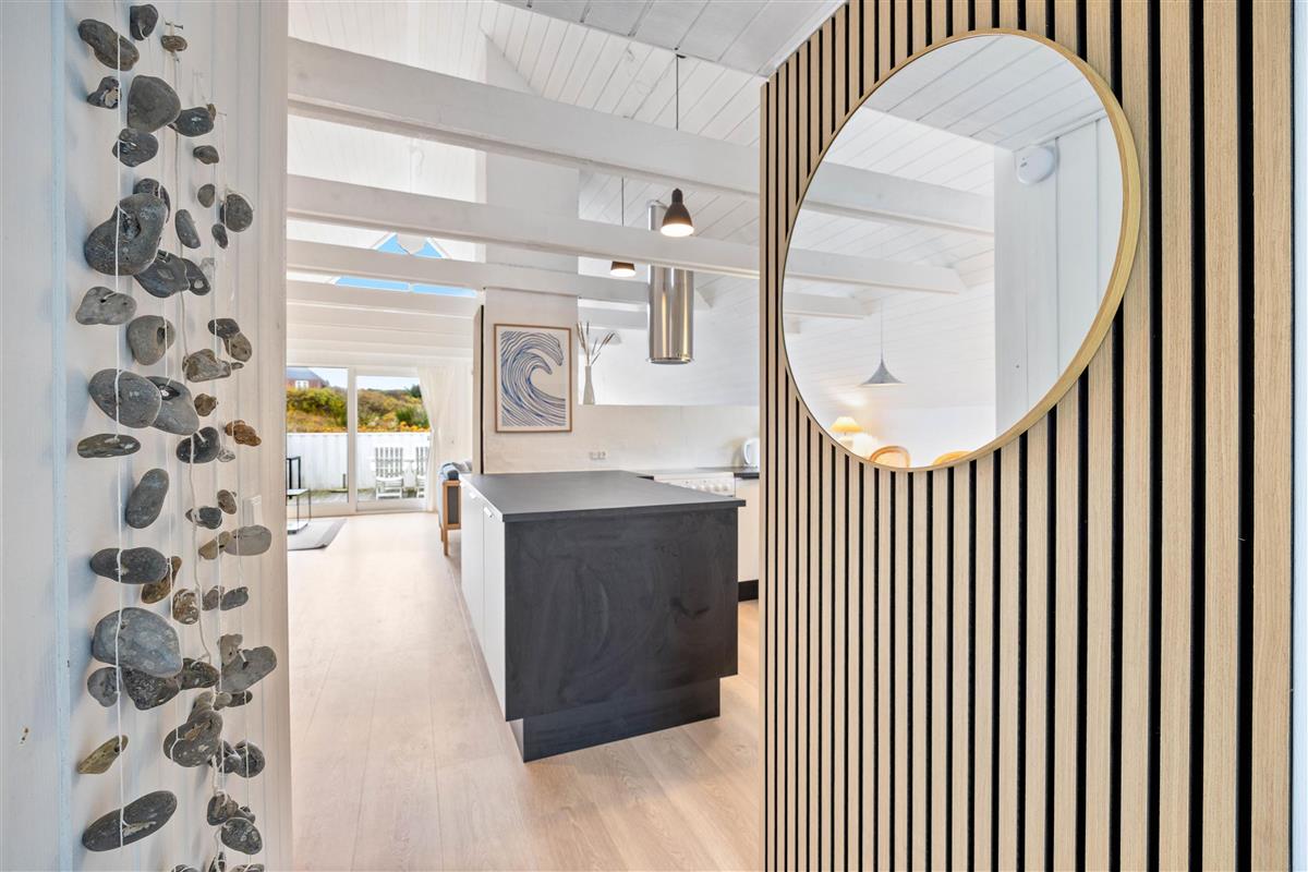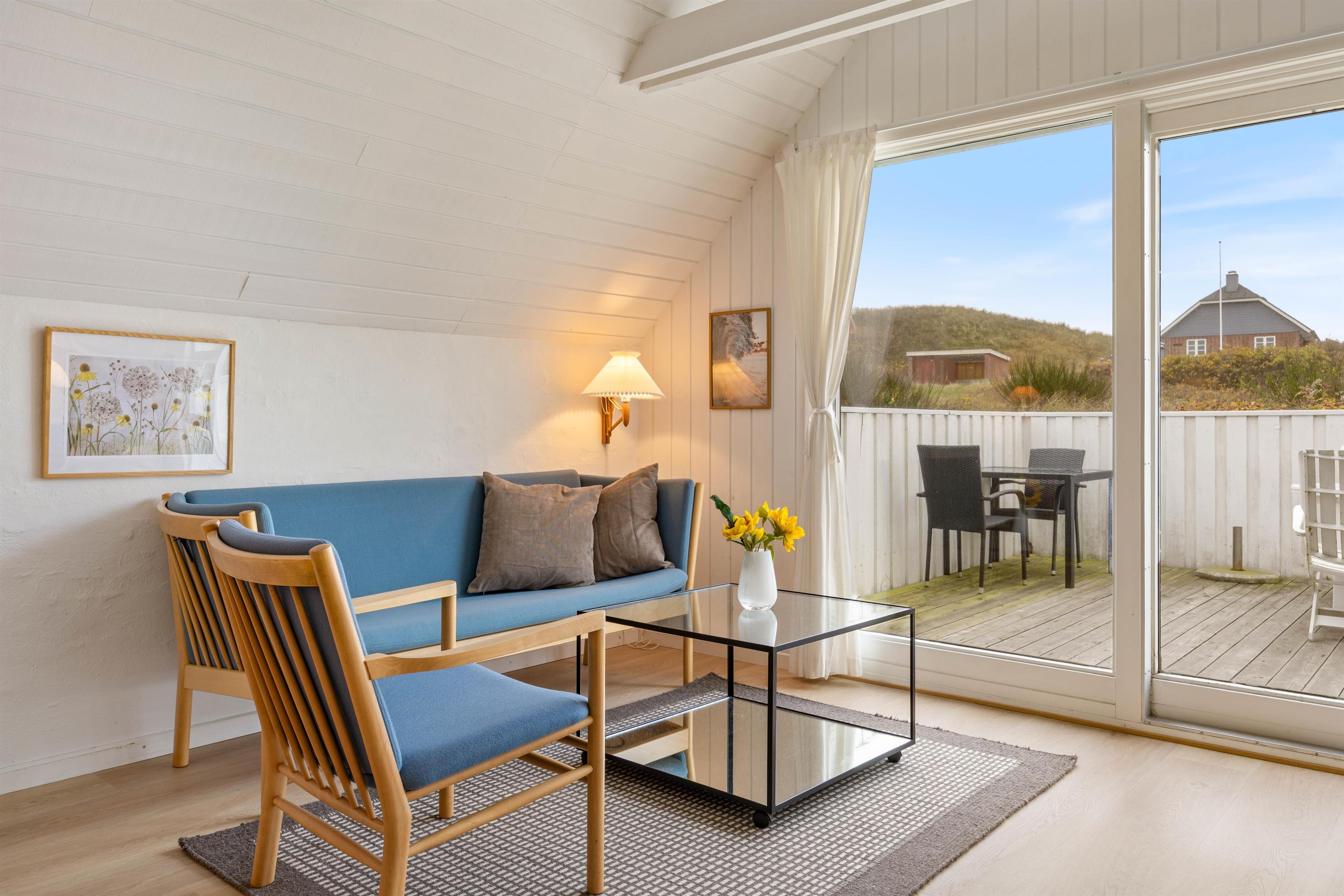 Located in a quiet cul-de-sac at Anders Juhls Vej 17, this bright and romantically furnished wooden holiday home exudes authentic country house charm. The holiday home is just 350 metres from the sea and beach, and it's only a short walk to the centre of Søndervig. This makes it perfect for long walks along the thundering sea or exploring the town, where additional attractions await.