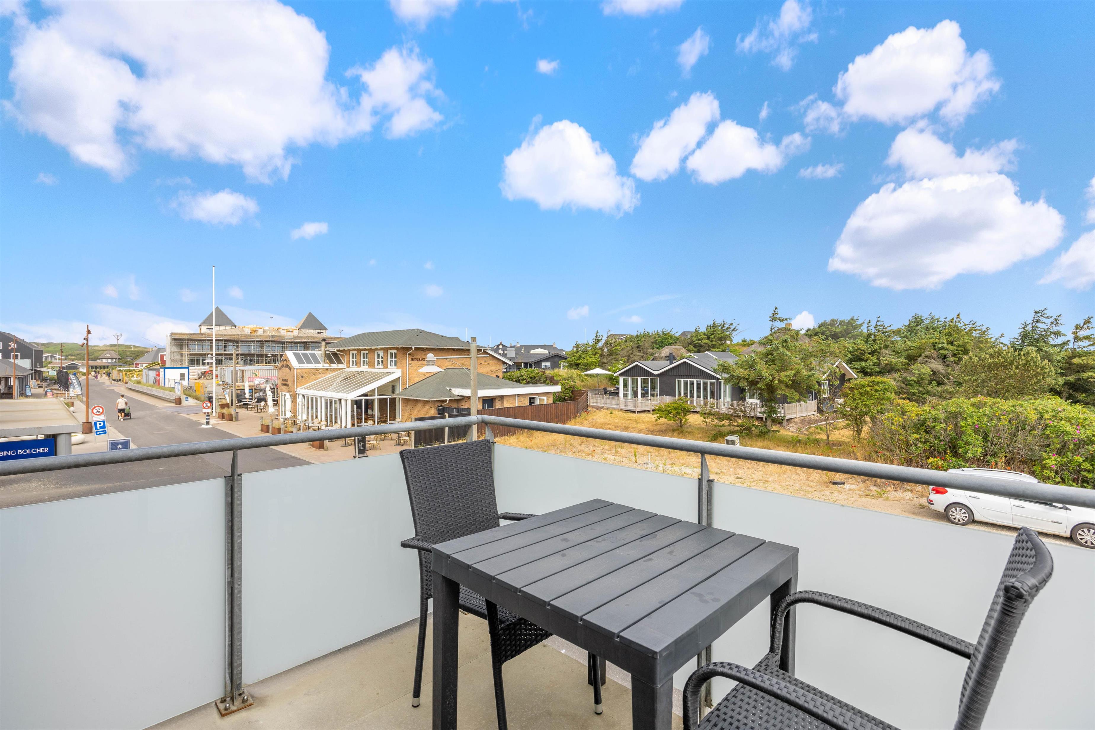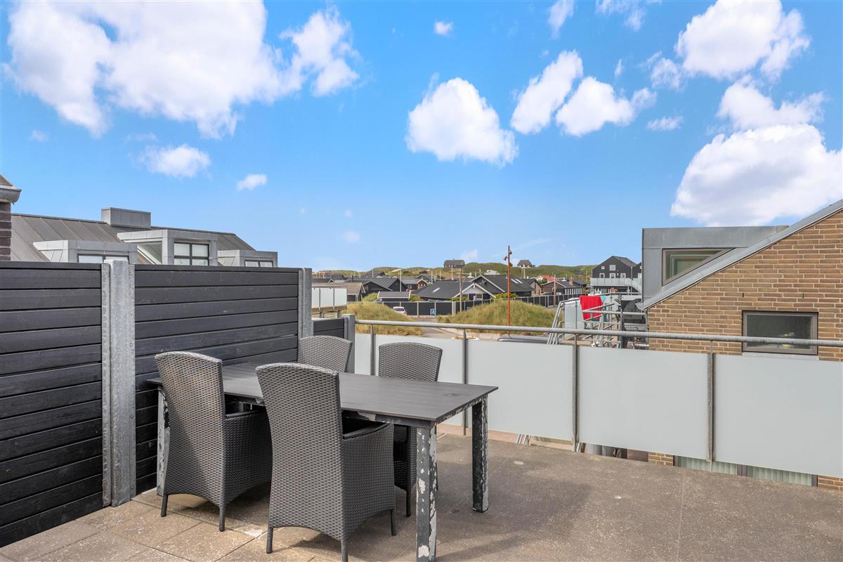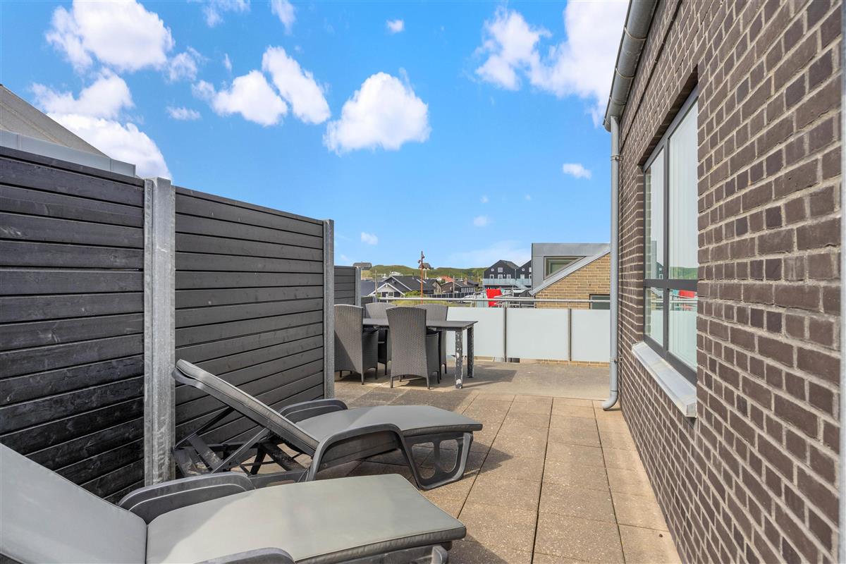 The holiday apartment includes several sheltered terraces overlooking the activities in Søndervig. The terrace comes equipped with a barbecue, garden furniture and sun loungers, and is screened for privacy, allowing you to sit undisturbed and enjoy the sunshine.