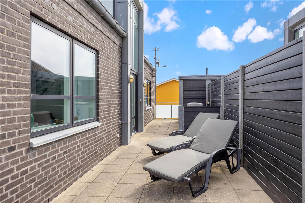 Terrace with barbecue and sun loungers at Badevej 5 1st floor right