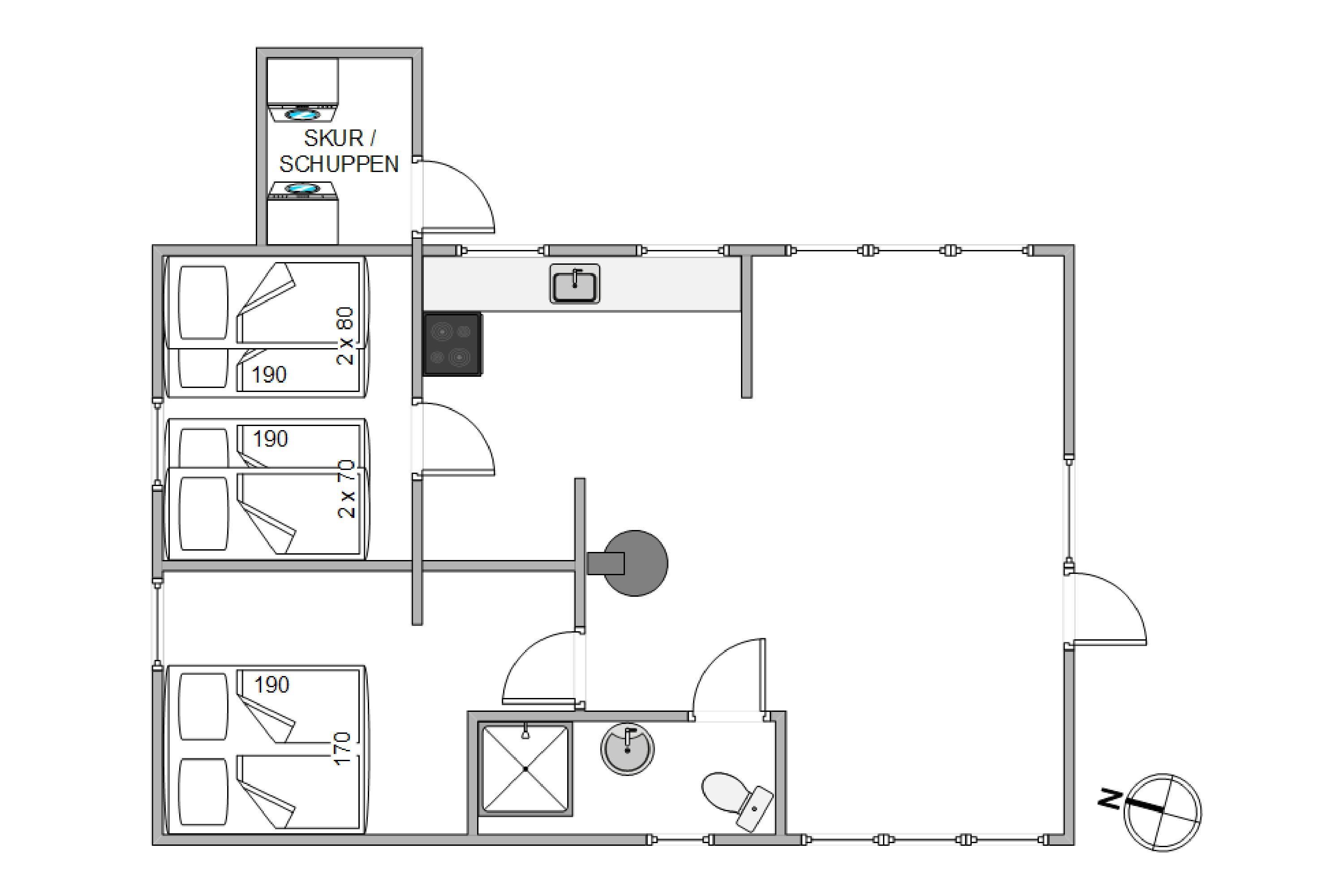 The spectacular views aren't the only advantage of this location; you're just 250 metres from the beach and approximately 10 minutes' walk from Søndervig centre. Here you'll find good shopping facilities along with cosy cafés and restaurants. All you need to do is book, pack your bags, and set off!