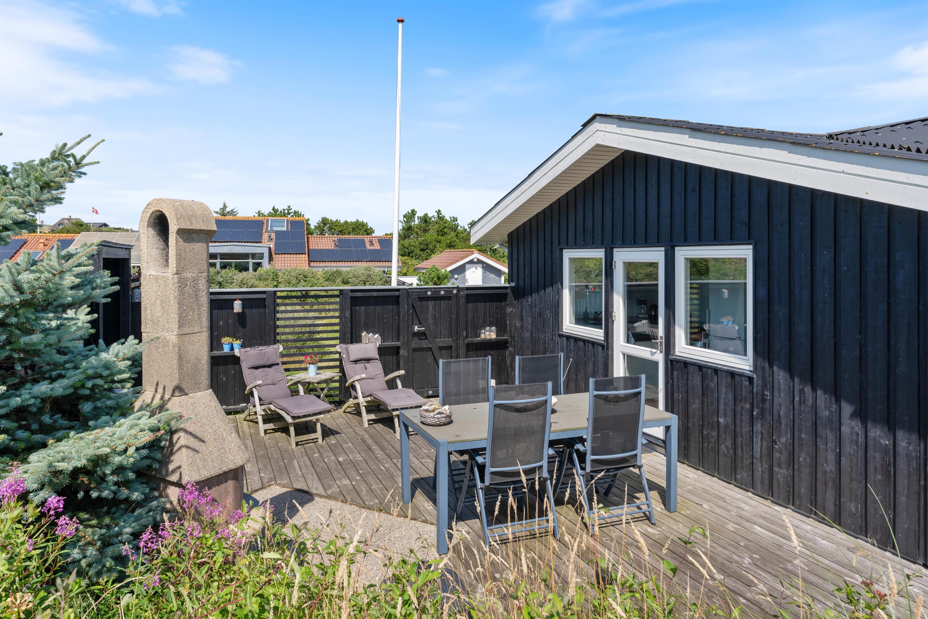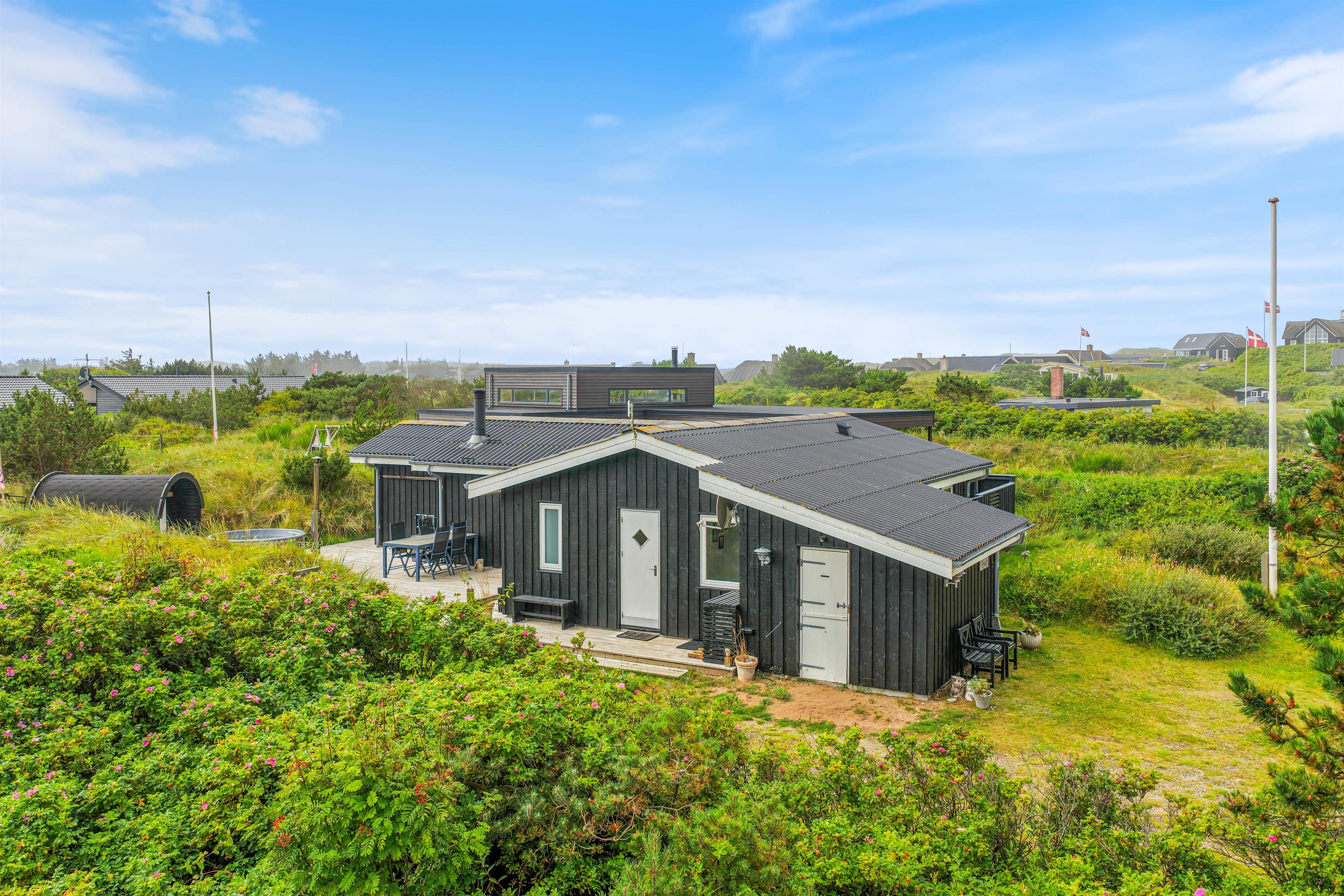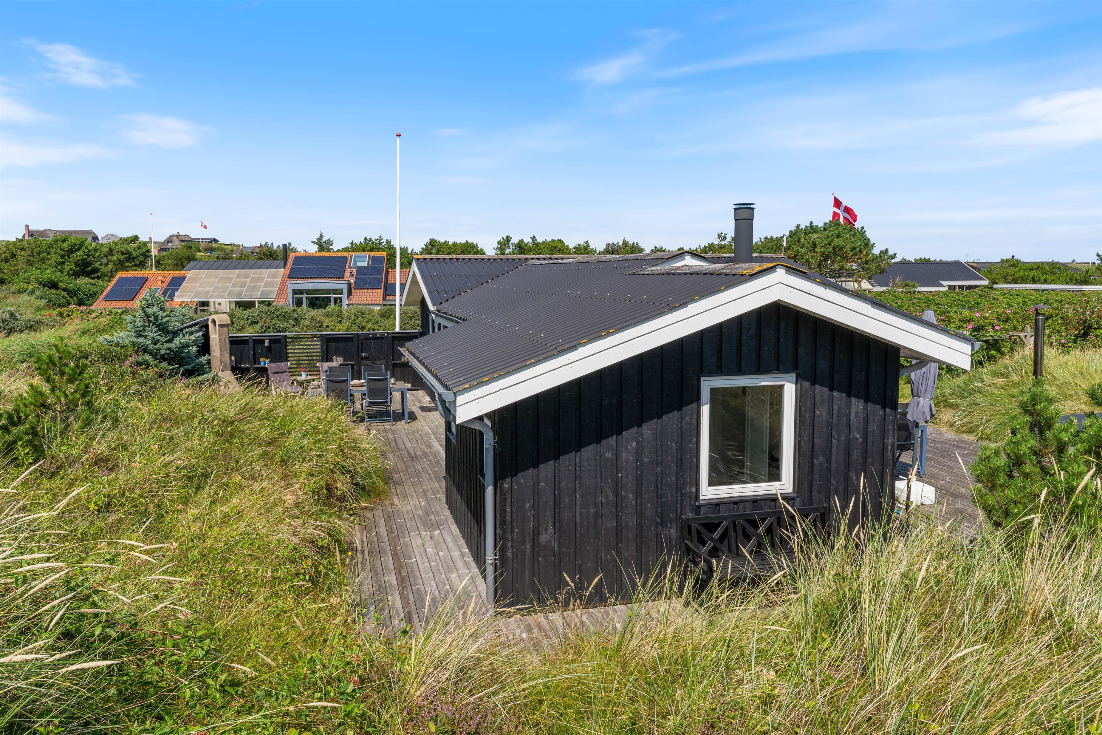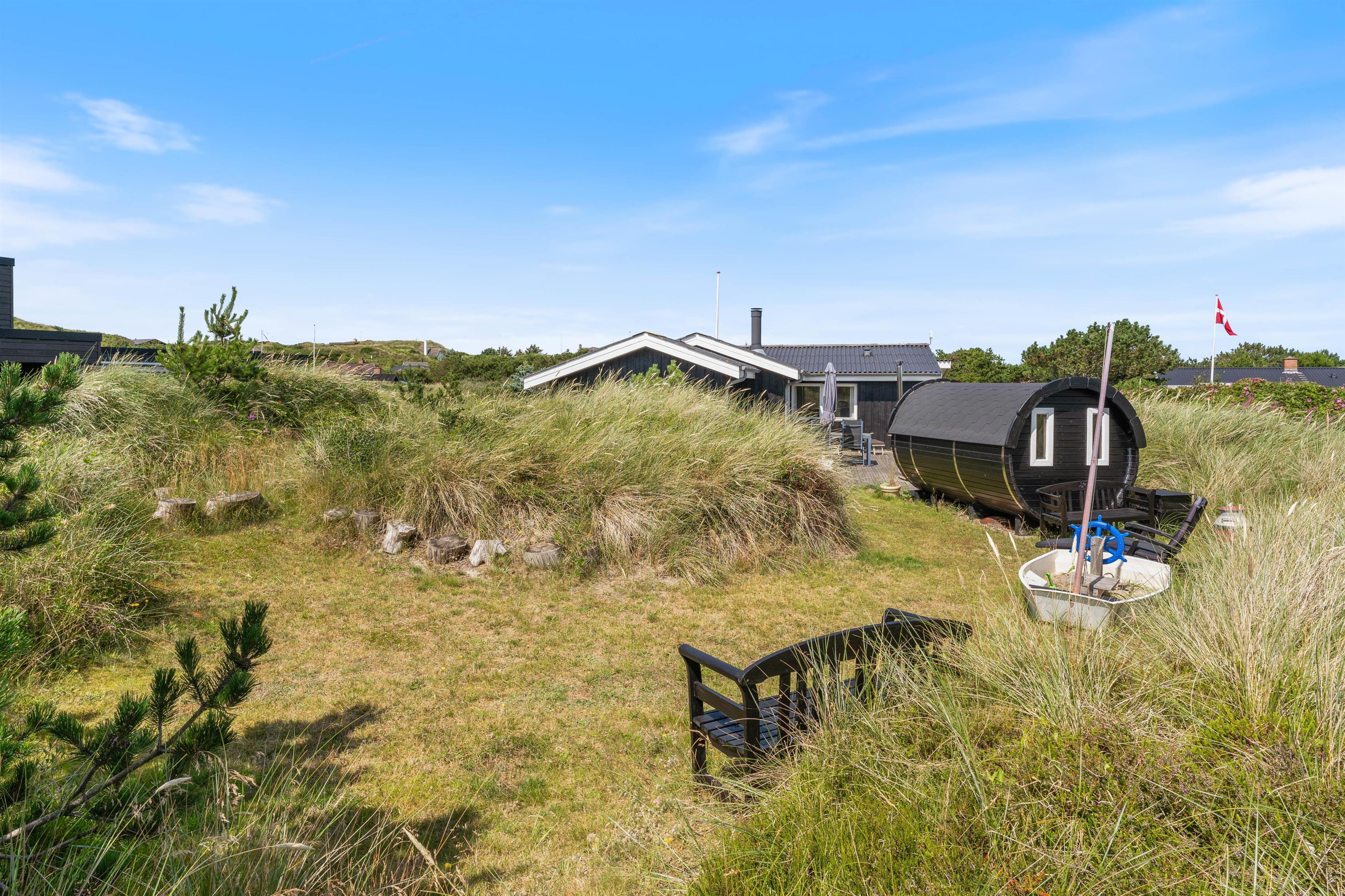 The holiday home is just 500 metres from the sea and endless sandy beach. A trip to the beach or a refreshing dip in the North Sea is always within easy reach. The beautiful dune landscape near the house is visible from the terrace, and if you bring or hire bicycles, there are well-maintained cycle paths around the Ringkøbing Fjord, which is also nearby.